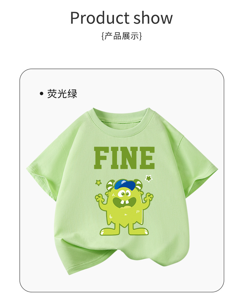 • 반팔 녹색 파란색 모자 몬스터 형광 녹색