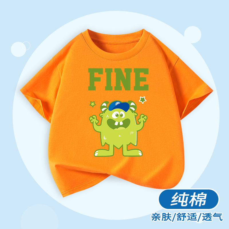 • 반팔 녹색 파란색 모자 몬스터 오렌지
