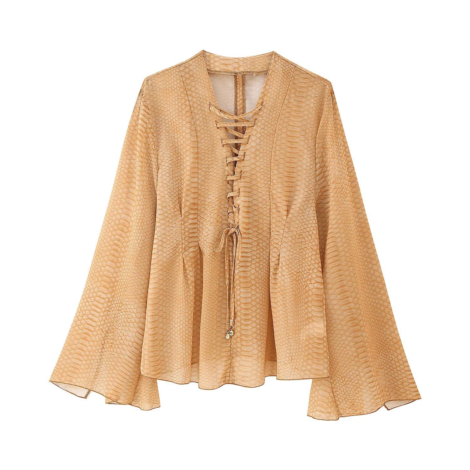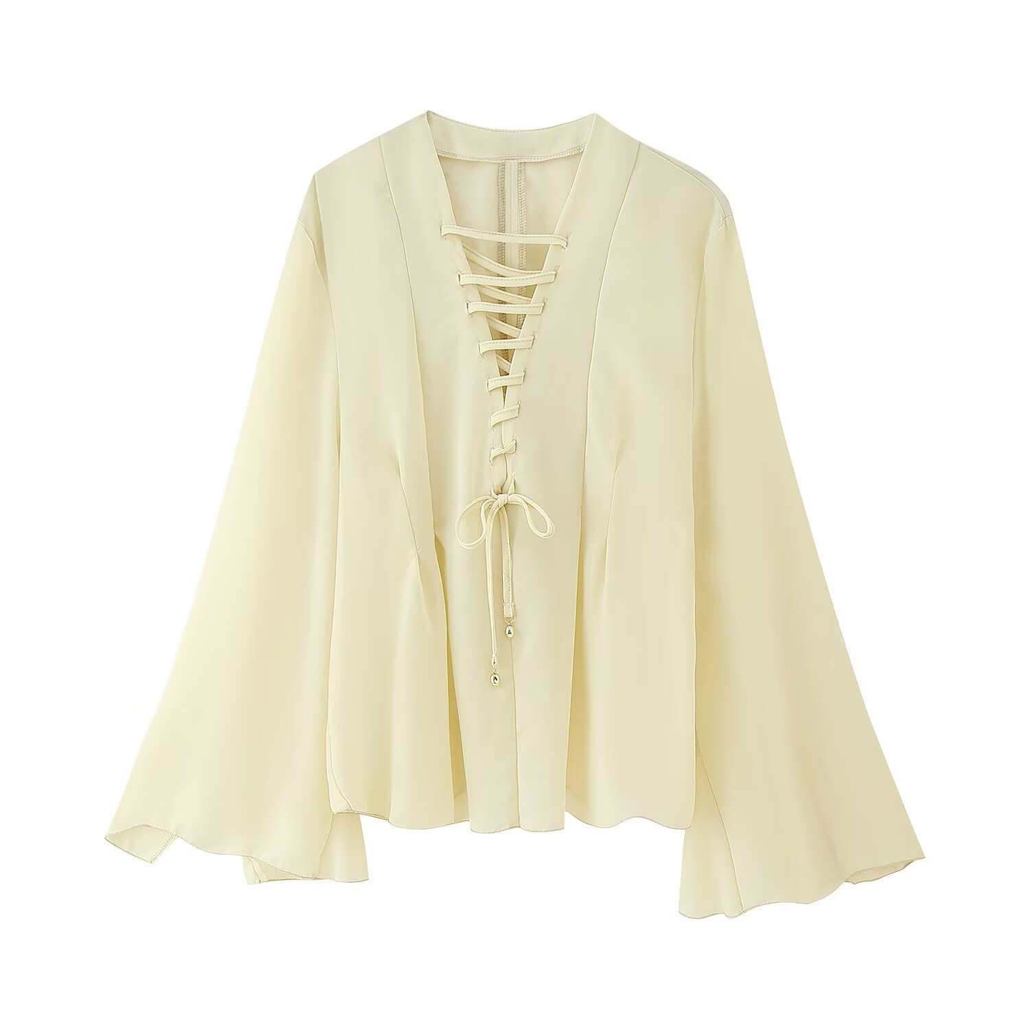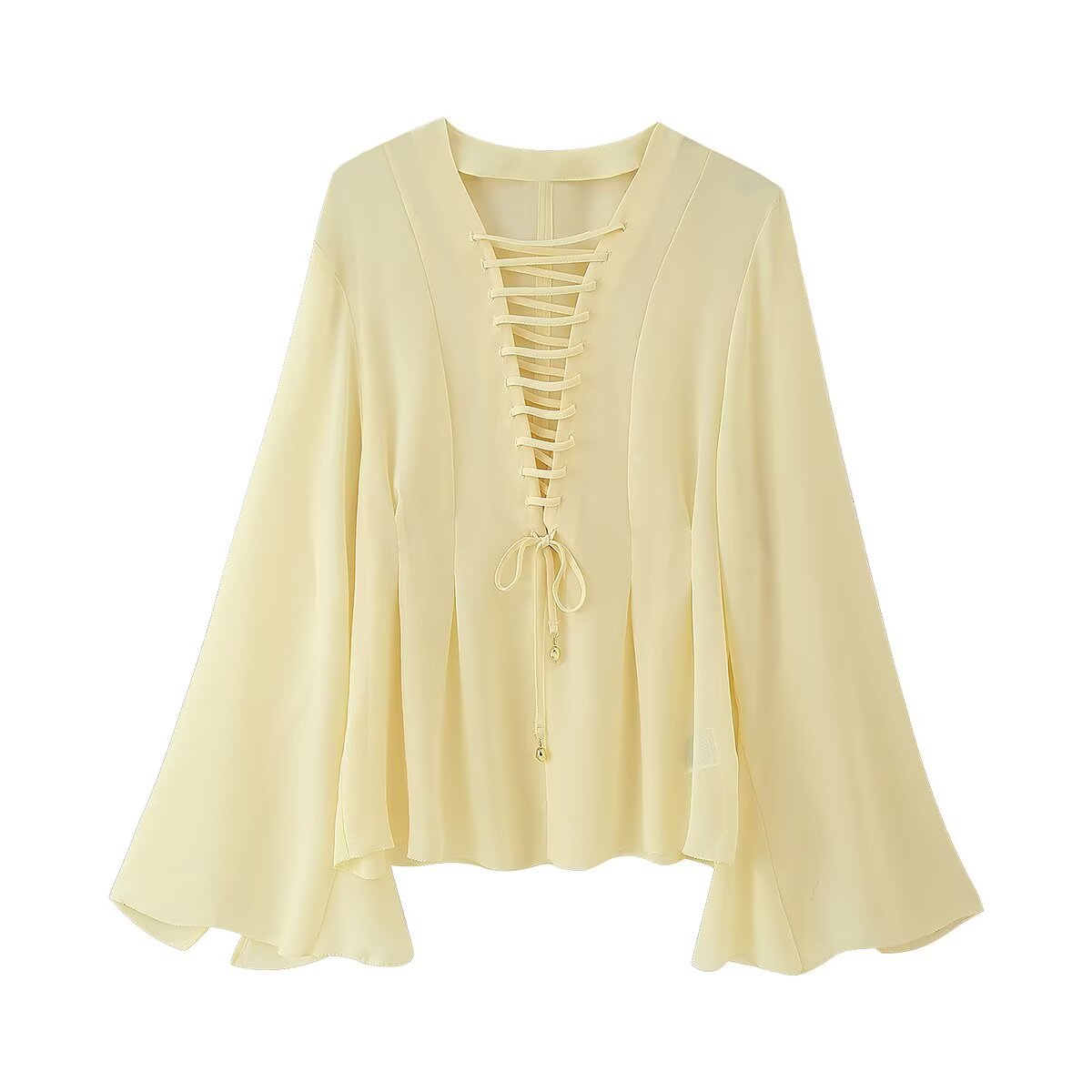 AliExpress 국경 간 도매 2025 여름 새로운 여성 레이스 업 쉬폰 탑 긴 소매 셔츠 여성스토어 가기