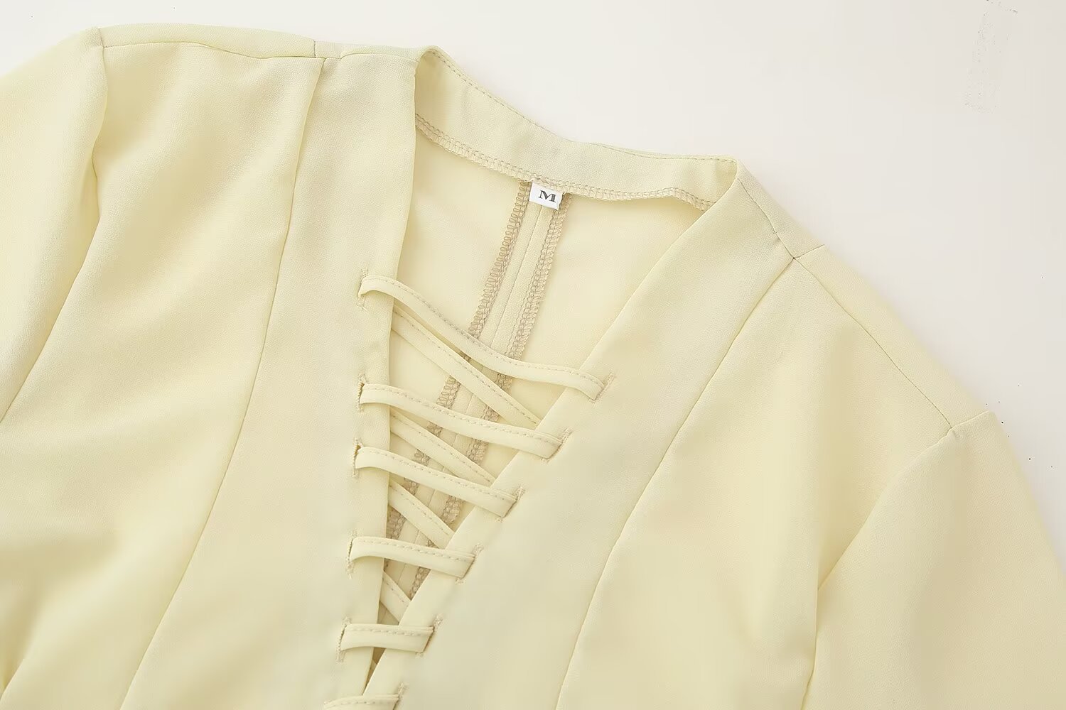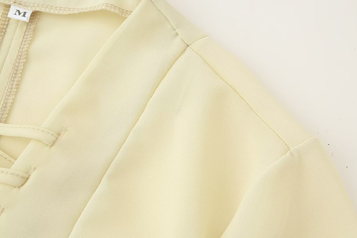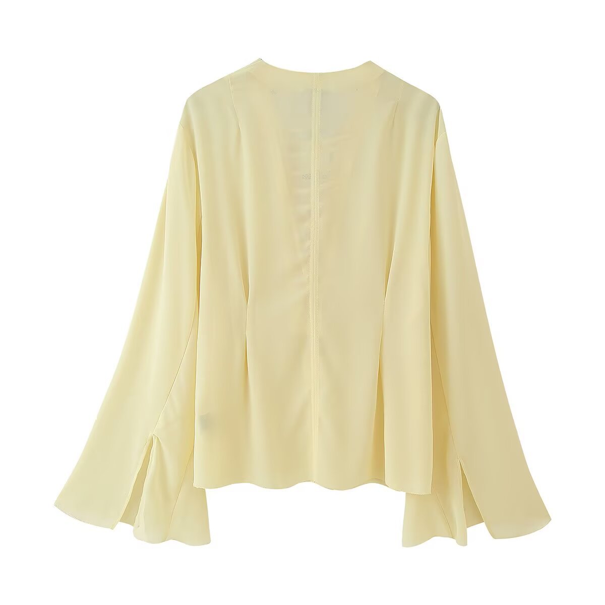AliExpress 국경 간 도매 2025 여름 새로운 여성 레이스 업 쉬폰 탑 긴 소매 셔츠 여성스토어 가기