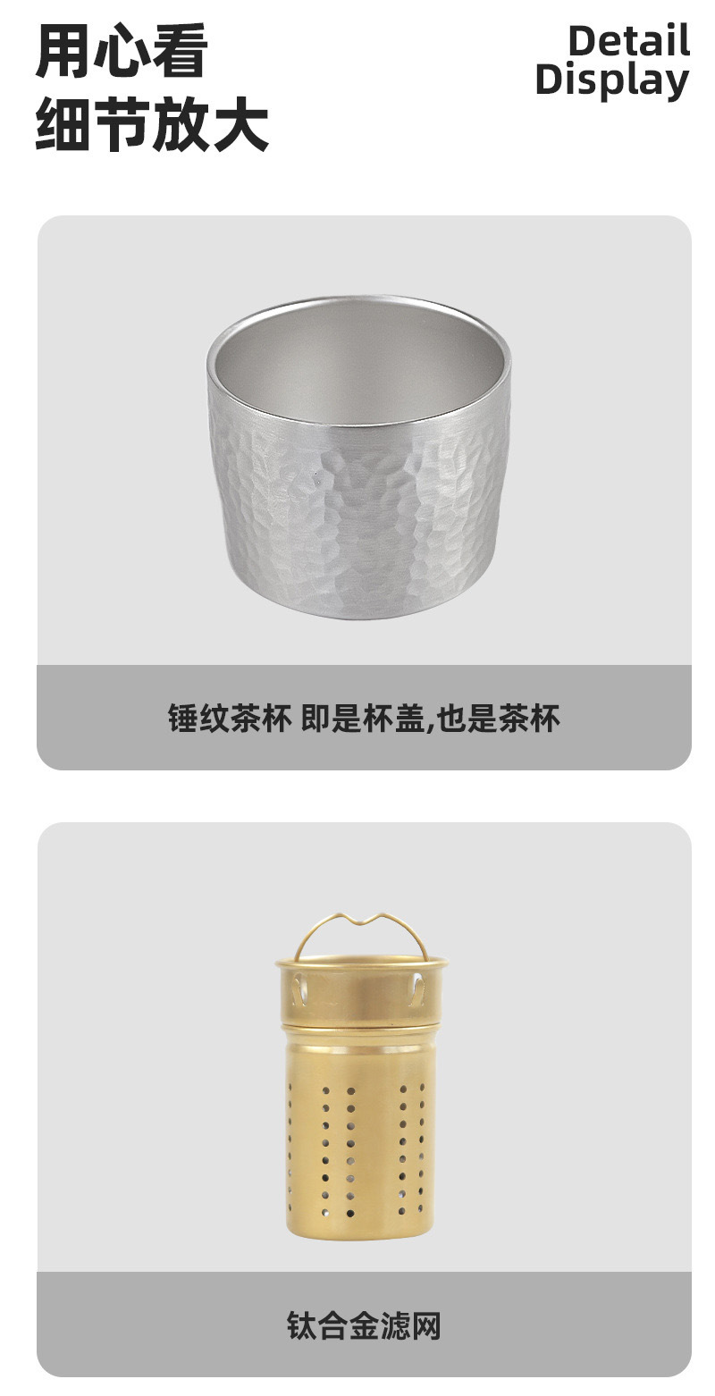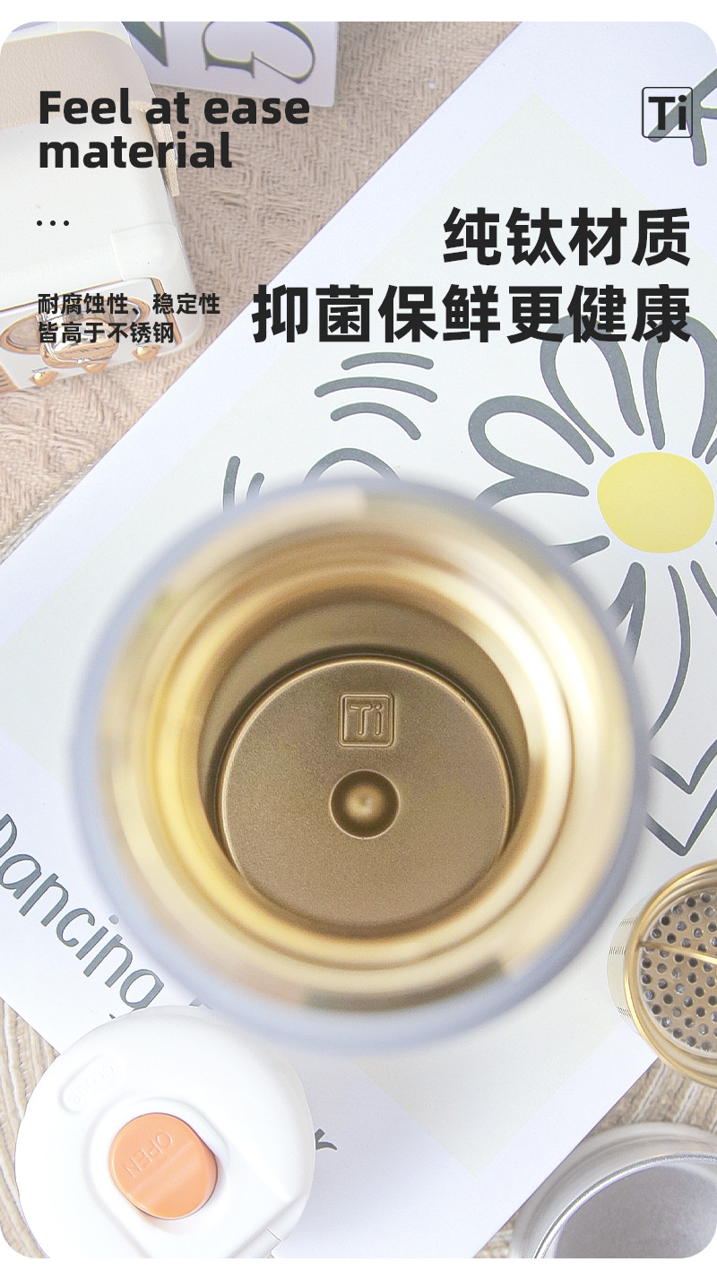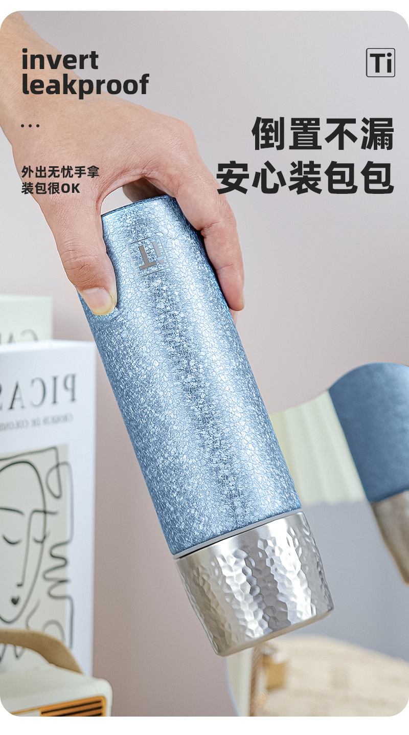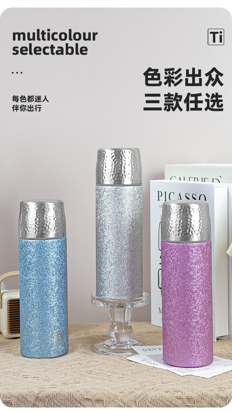 티타늄 해머 커버 브레이징 티 컵 비즈니스 선물 세트 선물 워터 컵으로 덮인 새로운 엔트리 라이트 럭셔리 가정용 순수 티타늄 보온병 컵