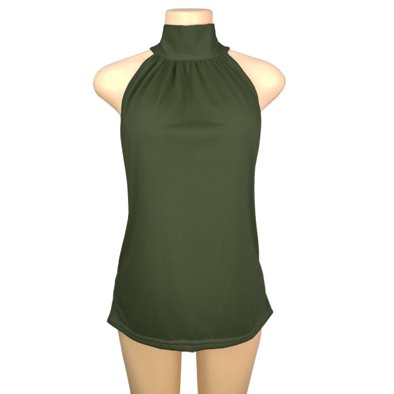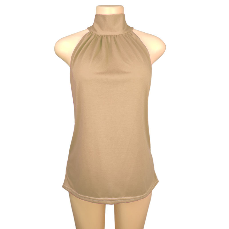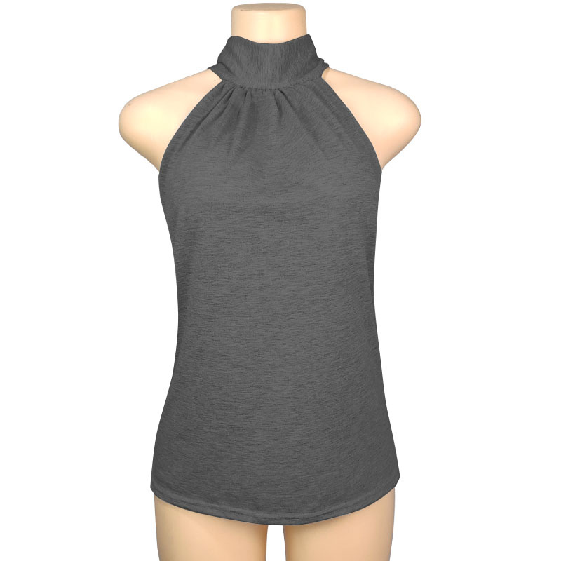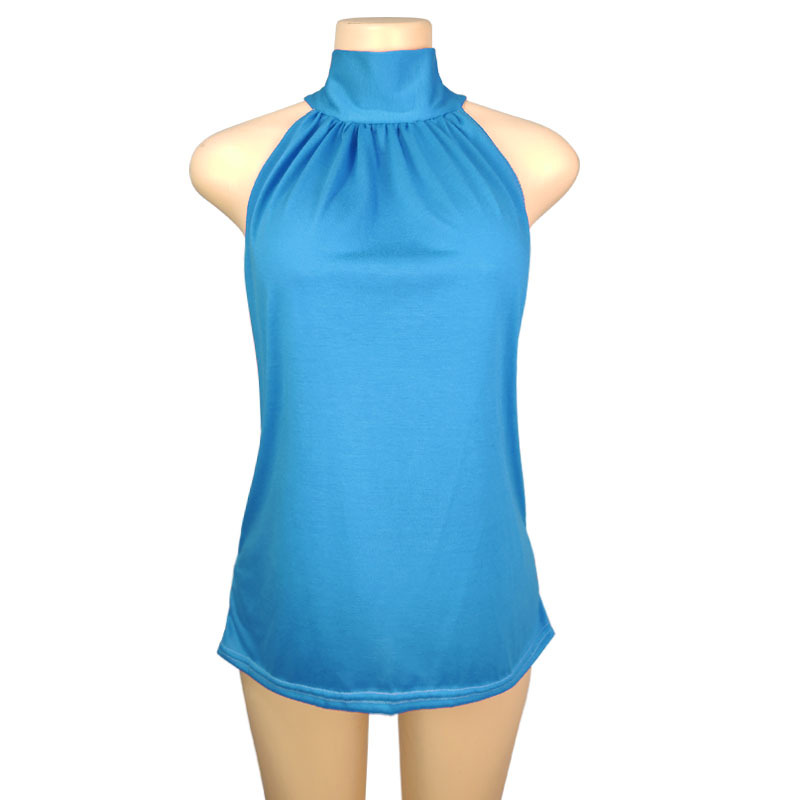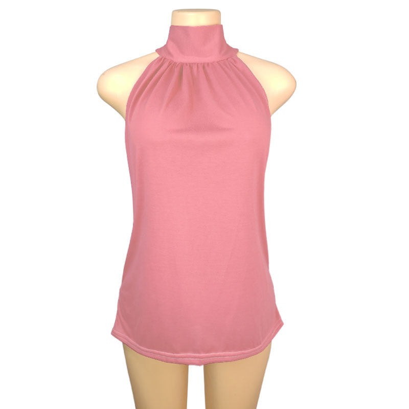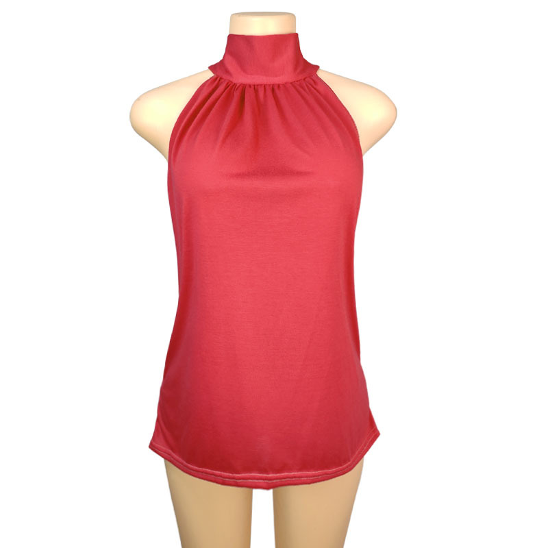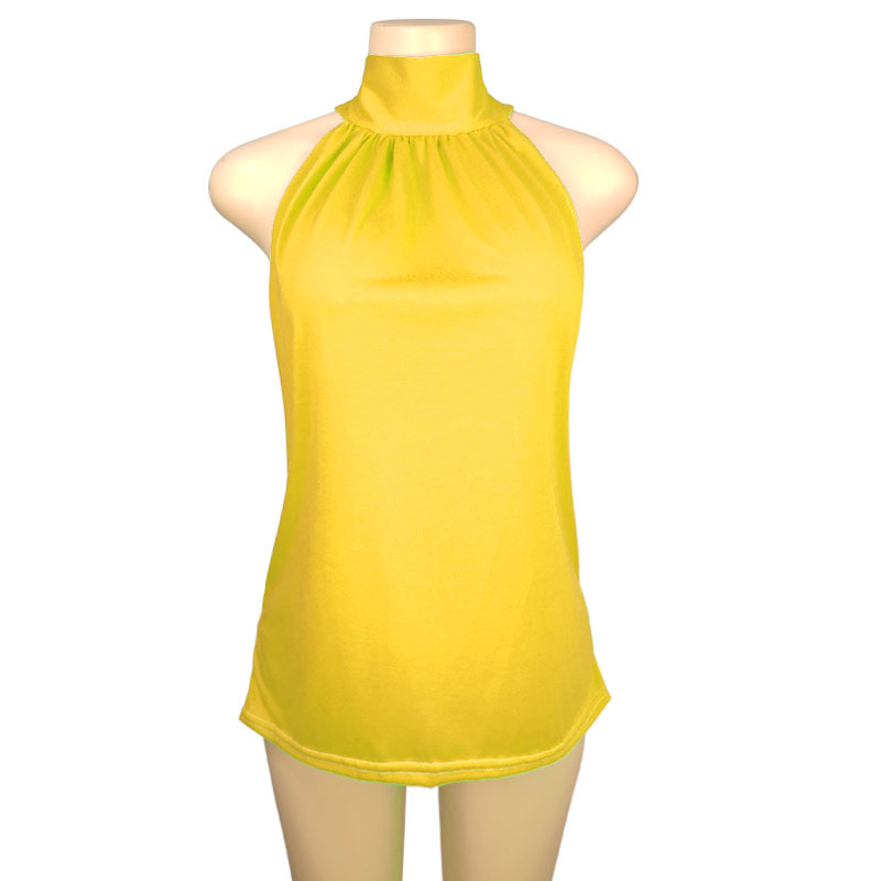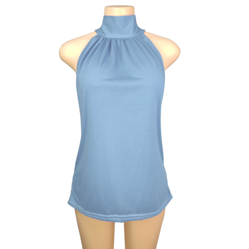 2025 국경 간 AliExpress 동남 아시아 대외 무역 여름 단색 홀터넥 넥 타이 니트 조끼 티셔츠 탑 여성 T스토어 가기