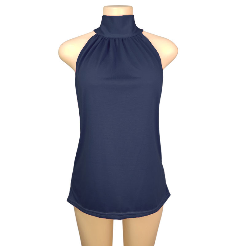 2025 국경 간 AliExpress 동남 아시아 대외 무역 여름 단색 홀터넥 넥 타이 니트 조끼 티셔츠 탑 여성 T