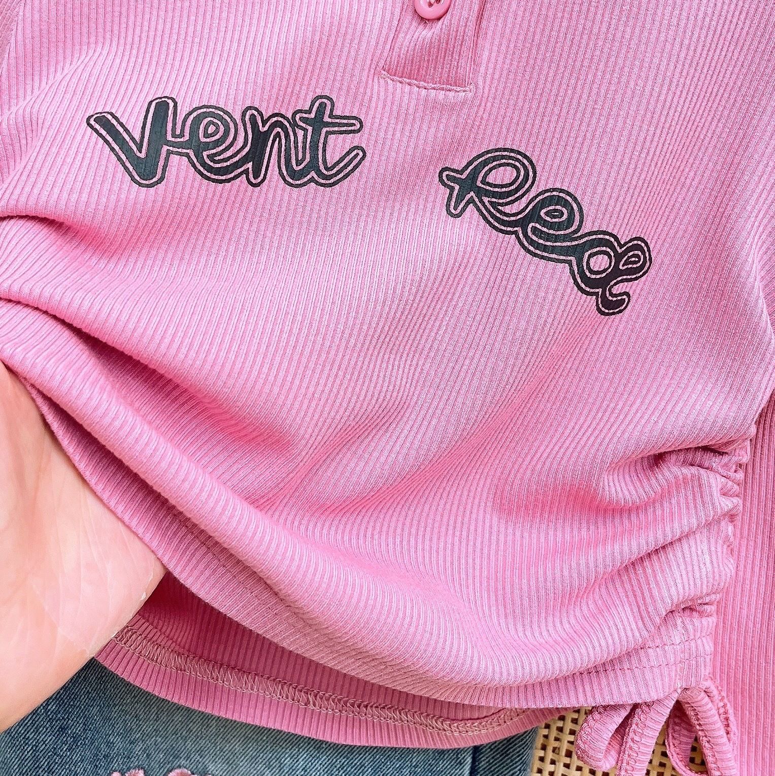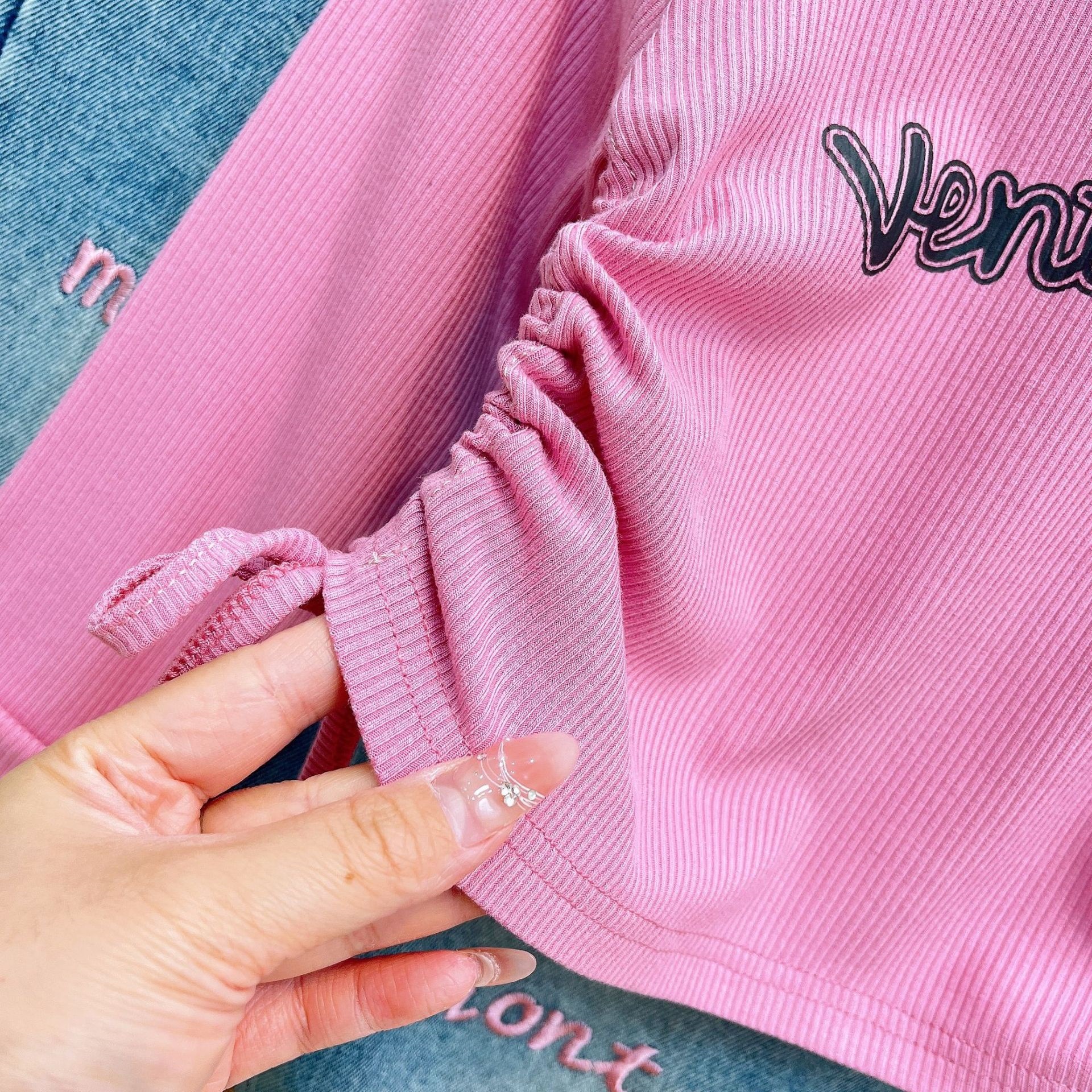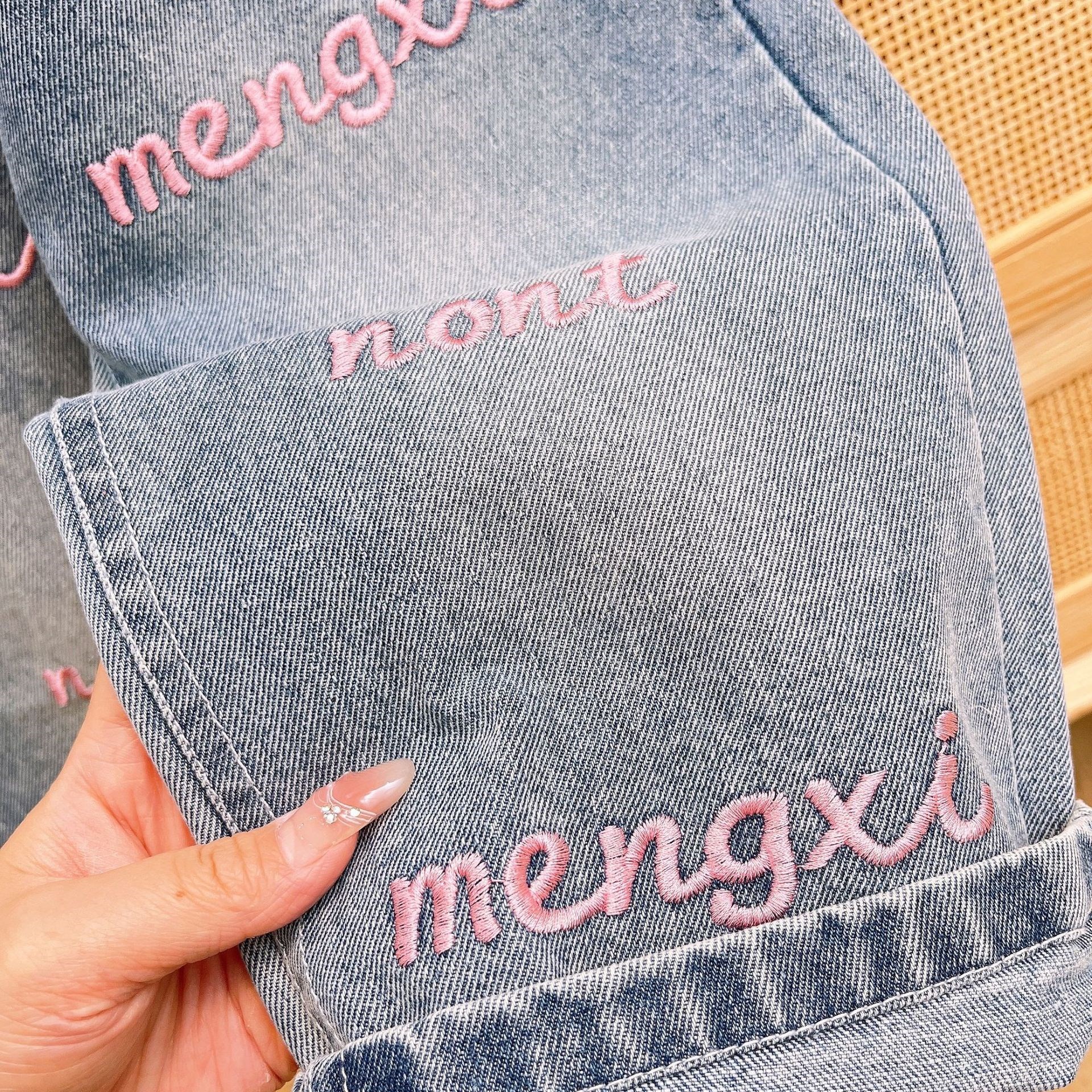 2024 소녀 가을, 겨울 새로운 아동 의류 아기 소녀 귀여운 Drawstring Bottoming Shirt Plus Letter 자수 청바지 정장스토어 가기