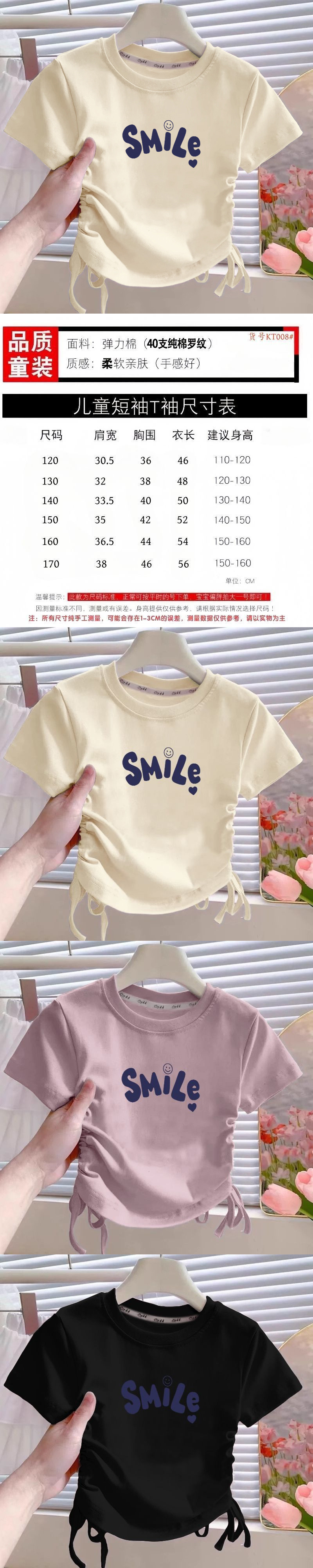 순면 중대형 어린이 불규칙한 졸라매는 끈 반팔 티셔츠 소녀 여름 디자인 라운드 넥 아동복 짧은 탑