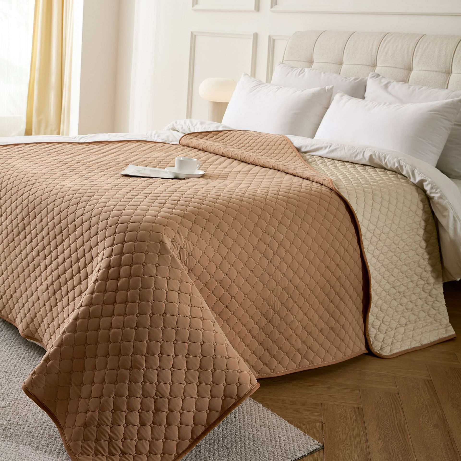 • 쿨 체크 애완동물 매트 카멜 컬러