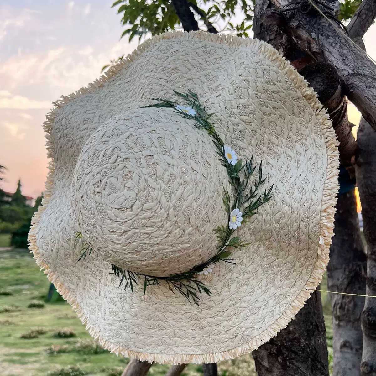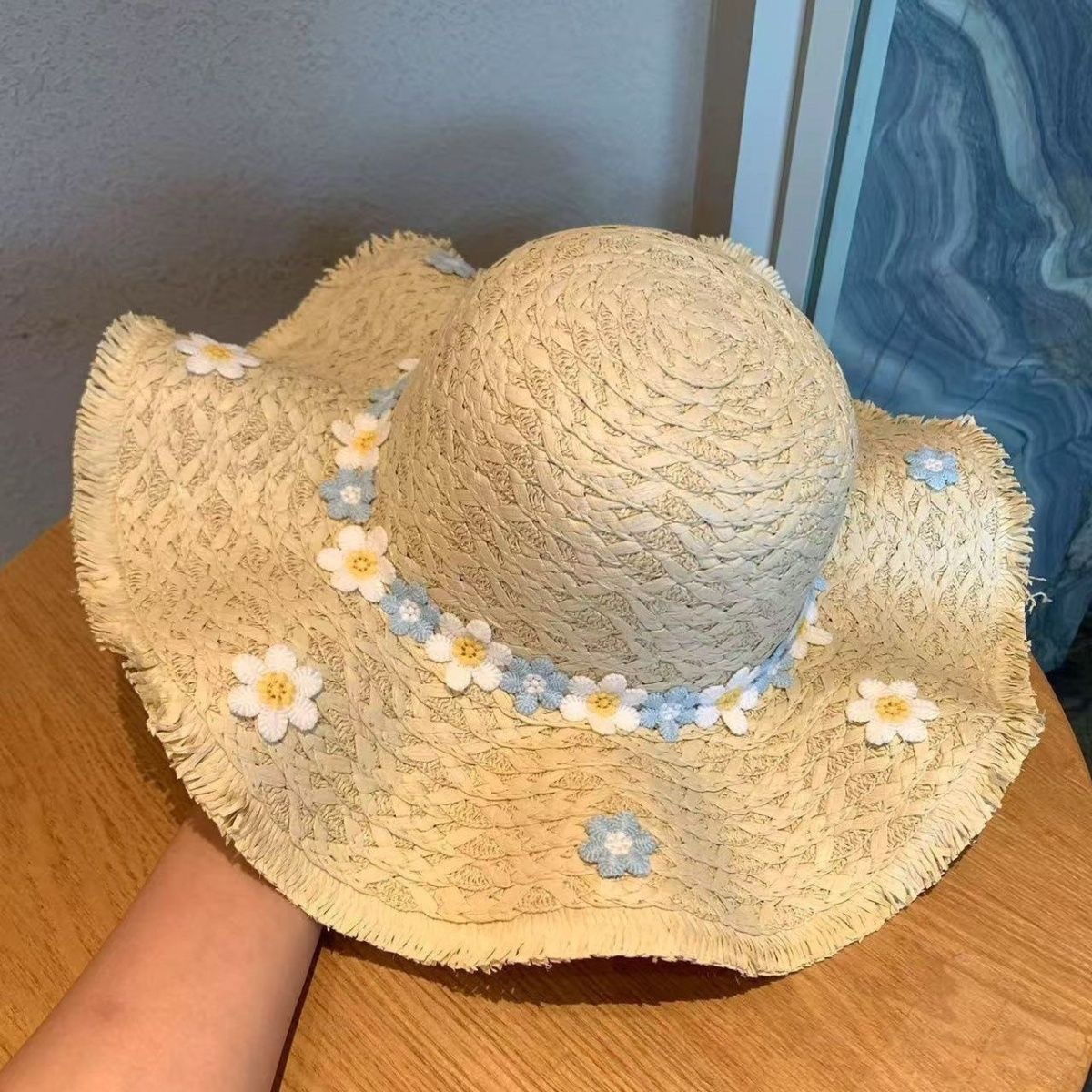 현야 스타일 컬러 나무 구슬 밀짚 모자 여성 여름 중공 큰 브림 햇빛 햇살 모자 접이식 어부의 모자 트렌디스토어 가기
