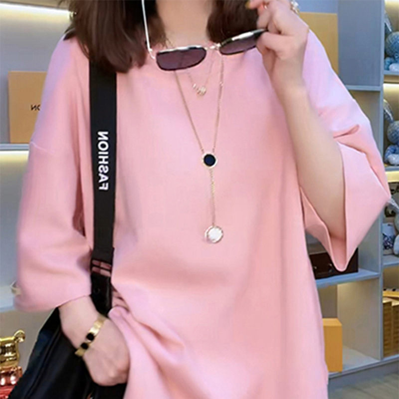 여름 여성을 위한 유럽 루즈한 반팔 티셔츠 새로운 스타일의 작은 사람들을 위한 얇은 반팔 탑 OM6121스토어 가기