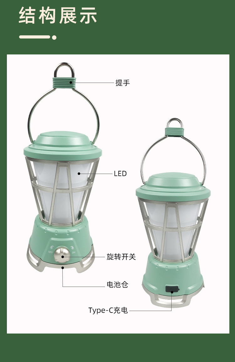 국경을 넘는 새로운 야외 조명 캠핑용 초고휘도 장시간 사용 가능한 캠프 분위기 조절 가능한 레트로 캠핑 텐트 랜턴