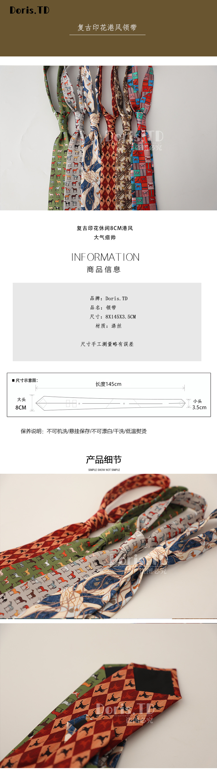 넥타이 남자 원피스 한국 영국 스타일 신사 유럽과 미국의 빈티지 인쇄 8CM 손 넥타이 학생 작업복스토어 가기