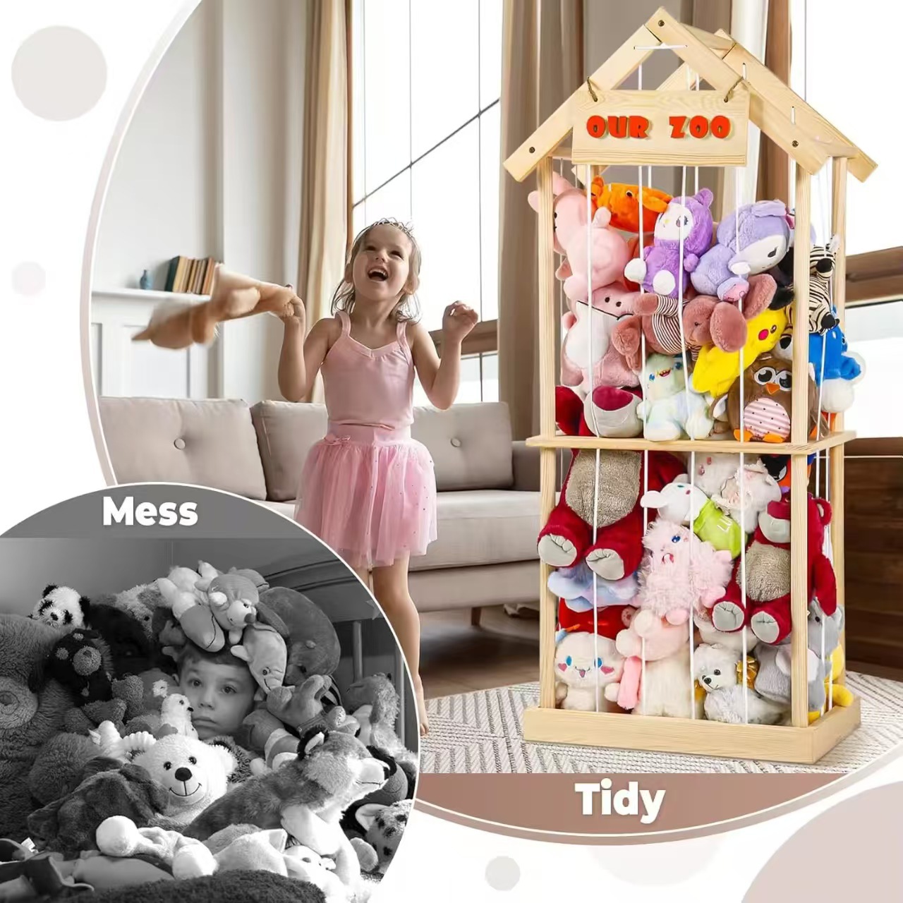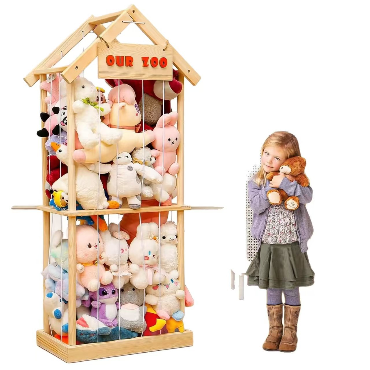 국경 간 목재 플러시 장난감 보관 랙 바닥 장난감 보관 랙 거실 코너 인형 인형 보관 랙