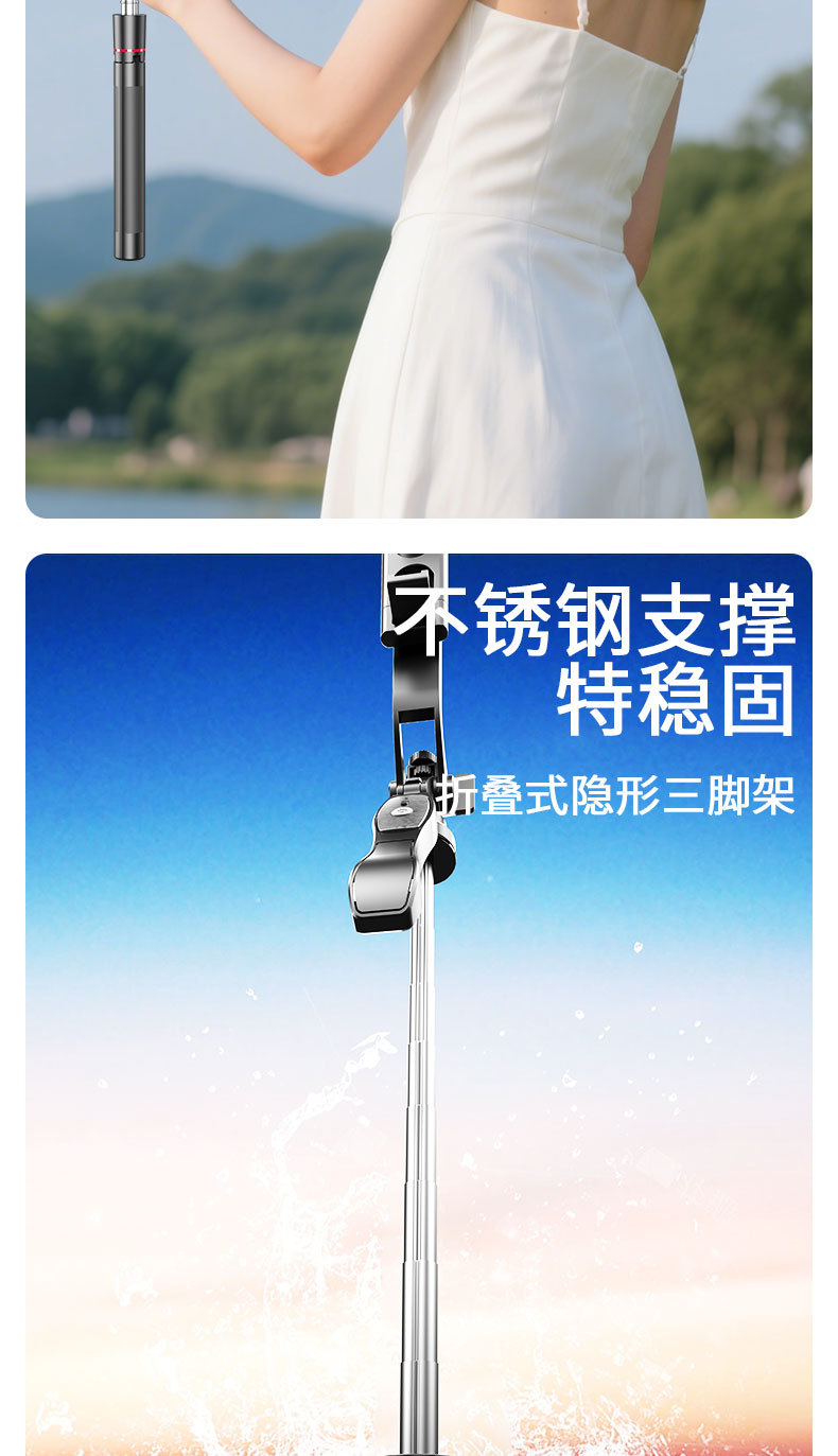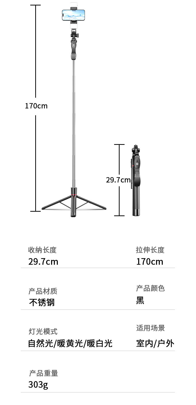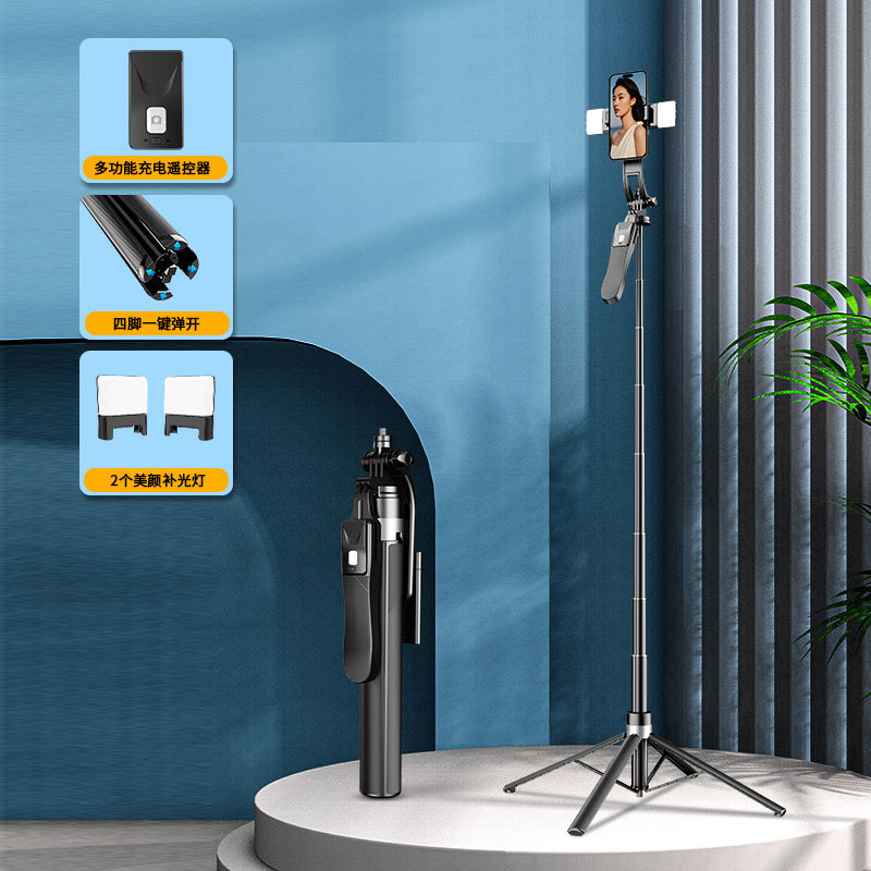 • U88 블루투스 셀카봉 듀얼 라이트 - 검정색 알루미늄 합금 튜브(1.8M)