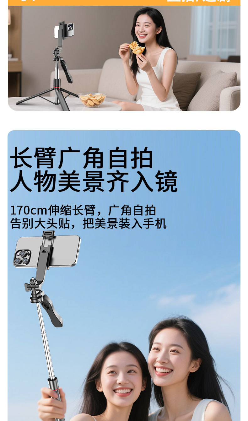 새로운 U17 블루투스 셀카봉 1.7M 플로어 스탠딩 휴대폰 홀더 물리적 손떨림 방지 휴대폰 셀카봉 360 회전스토어 가기