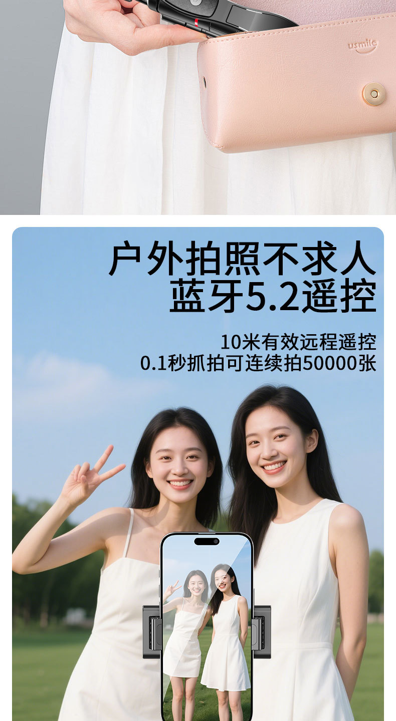 • U17 블루투스 셀카봉 블랙 - 스테인레스 스틸 튜브 스트레치 1.7M