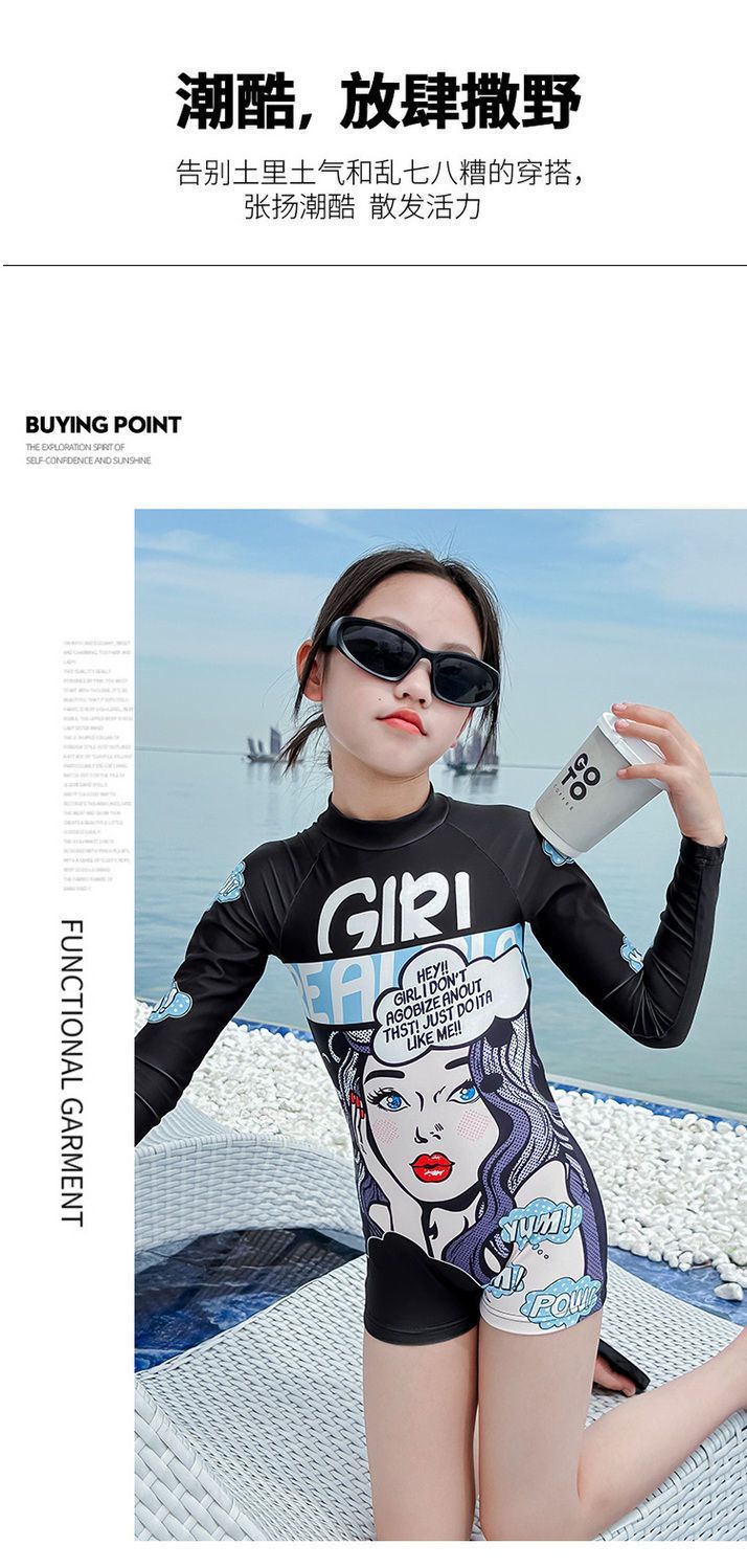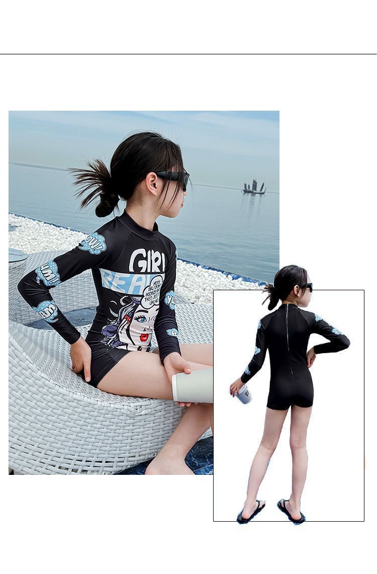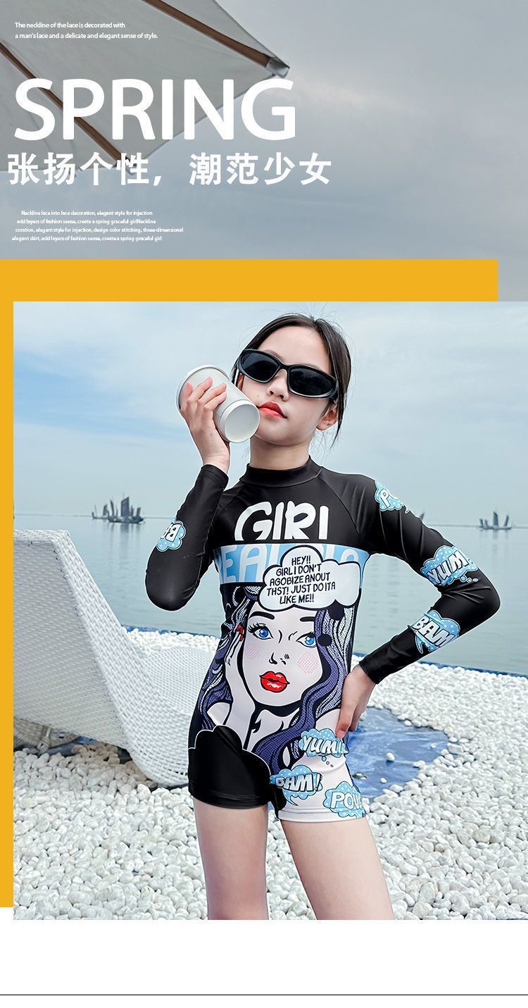 여아 원피스 수영복, 고급스럽고 트렌디한 스타일, 긴팔 자외선 차단 기질, 여아 속건성 전문 수영복, 중대형 아동 여름스토어 가기