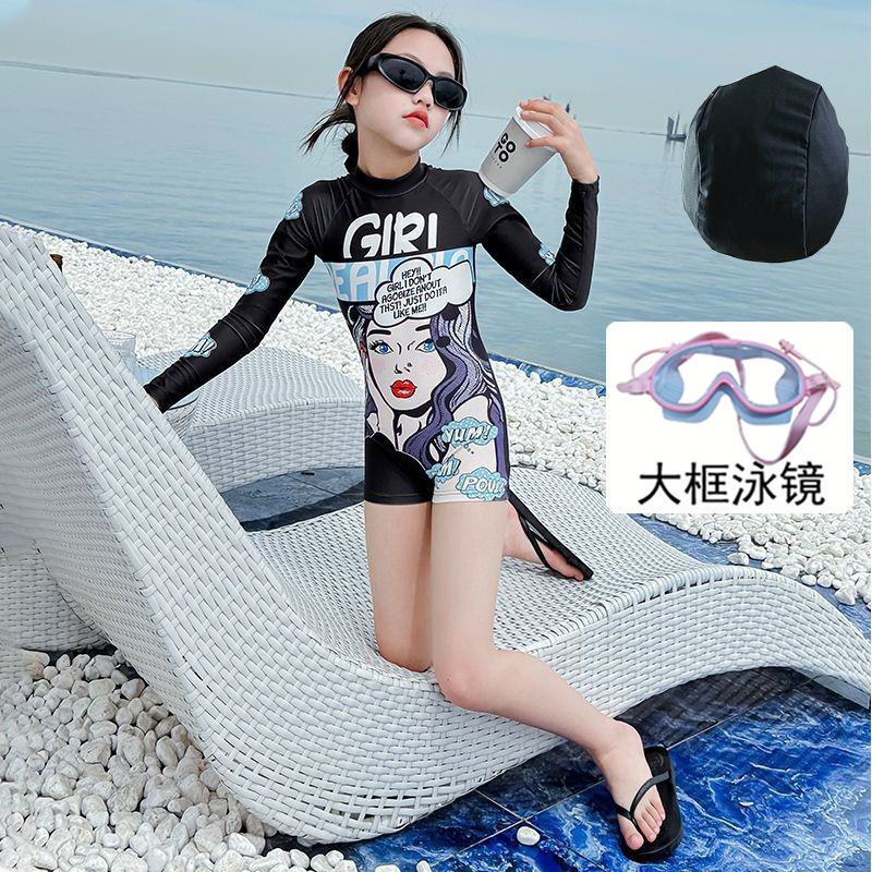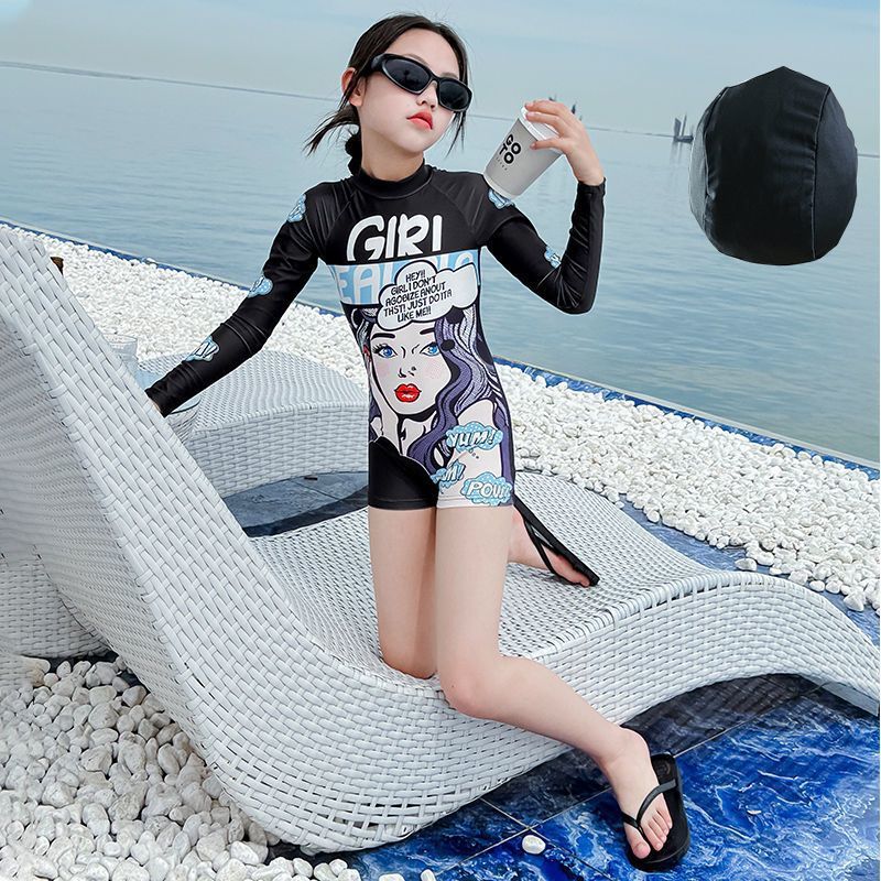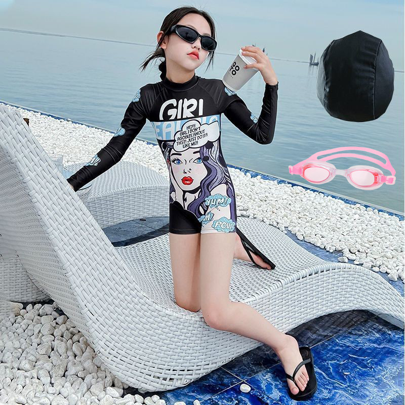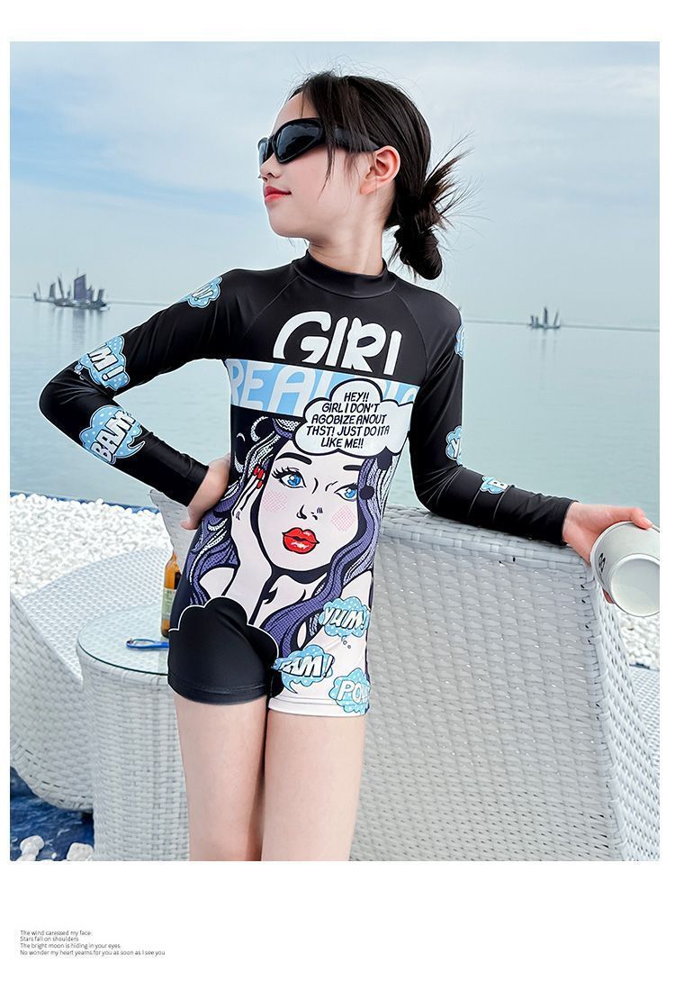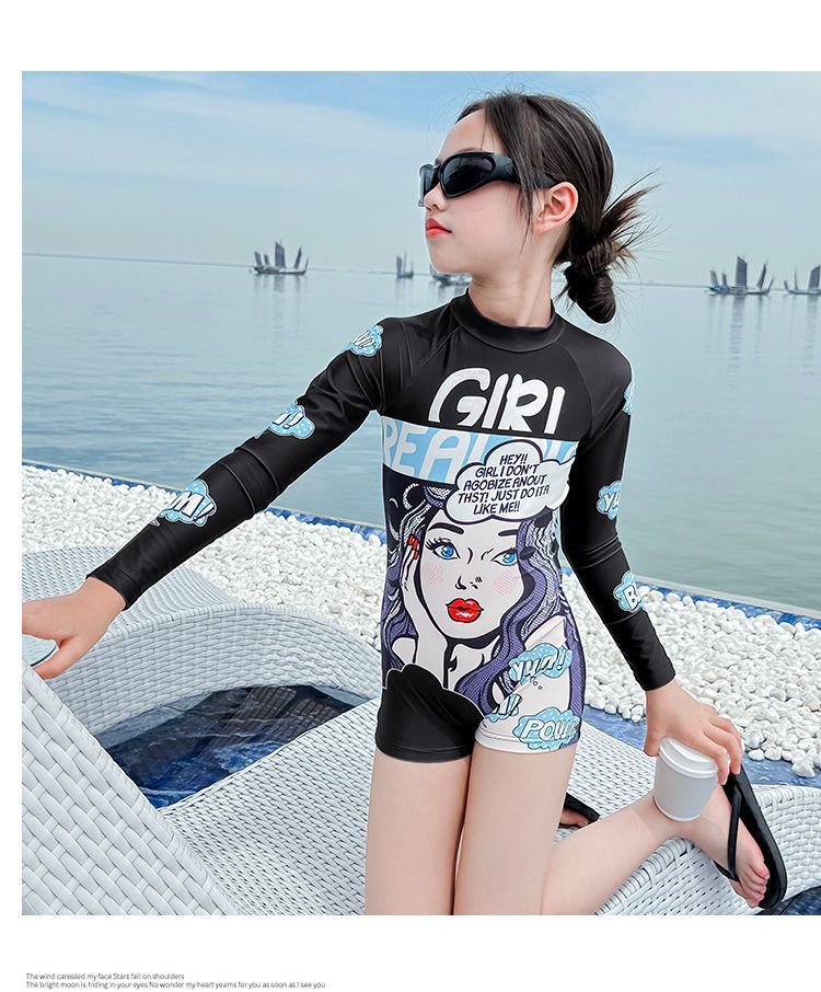 여아 원피스 수영복, 고급스럽고 트렌디한 스타일, 긴팔 자외선 차단 기질, 여아 속건성 전문 수영복, 중대형 아동 여름스토어 가기