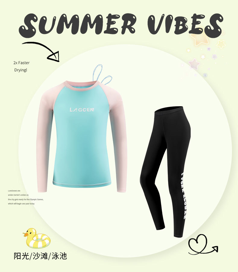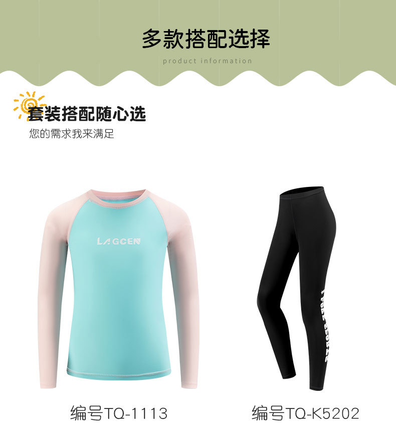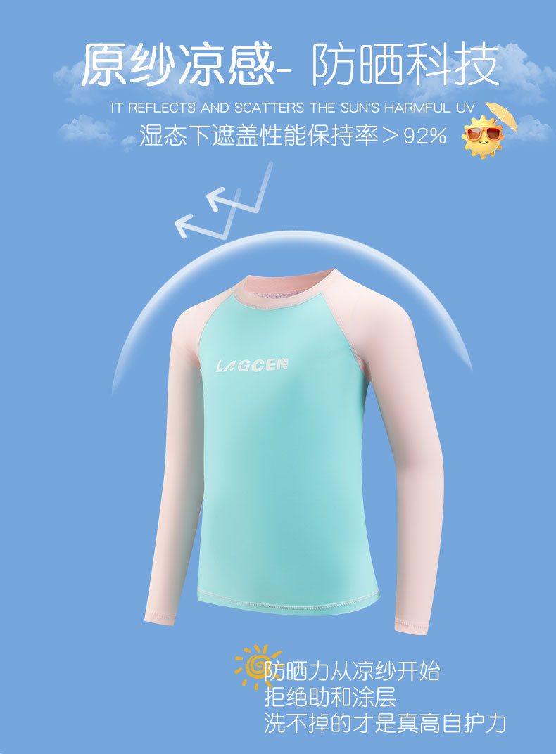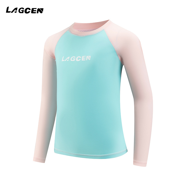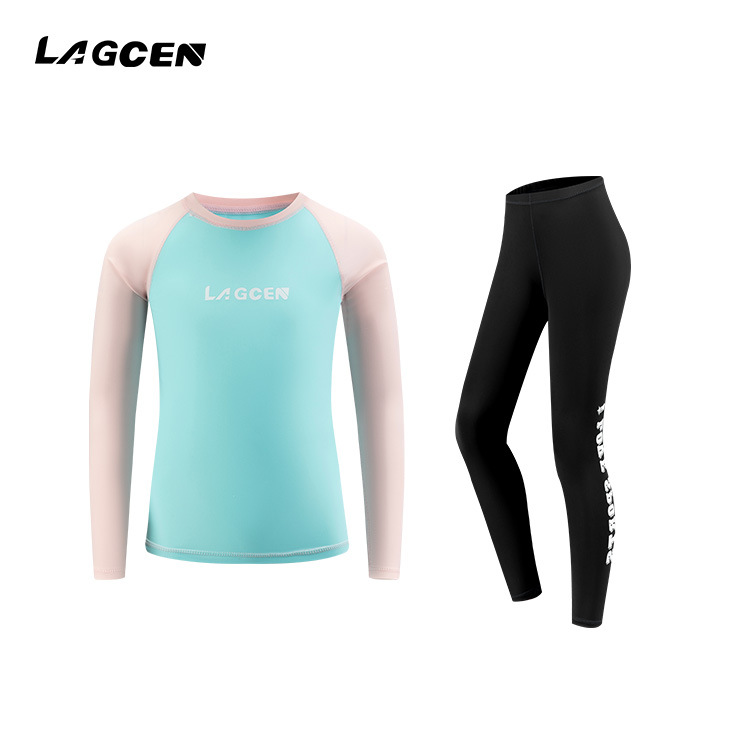 LAGCEN 크로스 보더 소녀 잠수복 비치 선 스크린 핑크 신선한 수영복 긴팔 탑 서핑 속건성 수영복