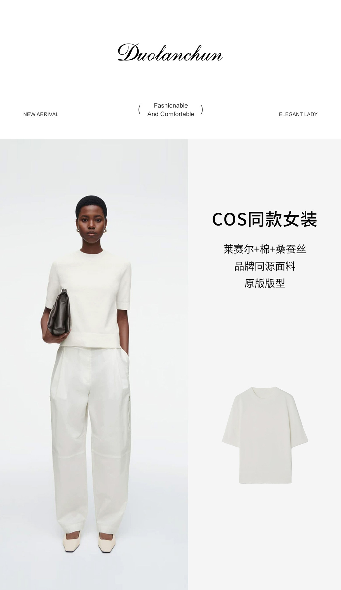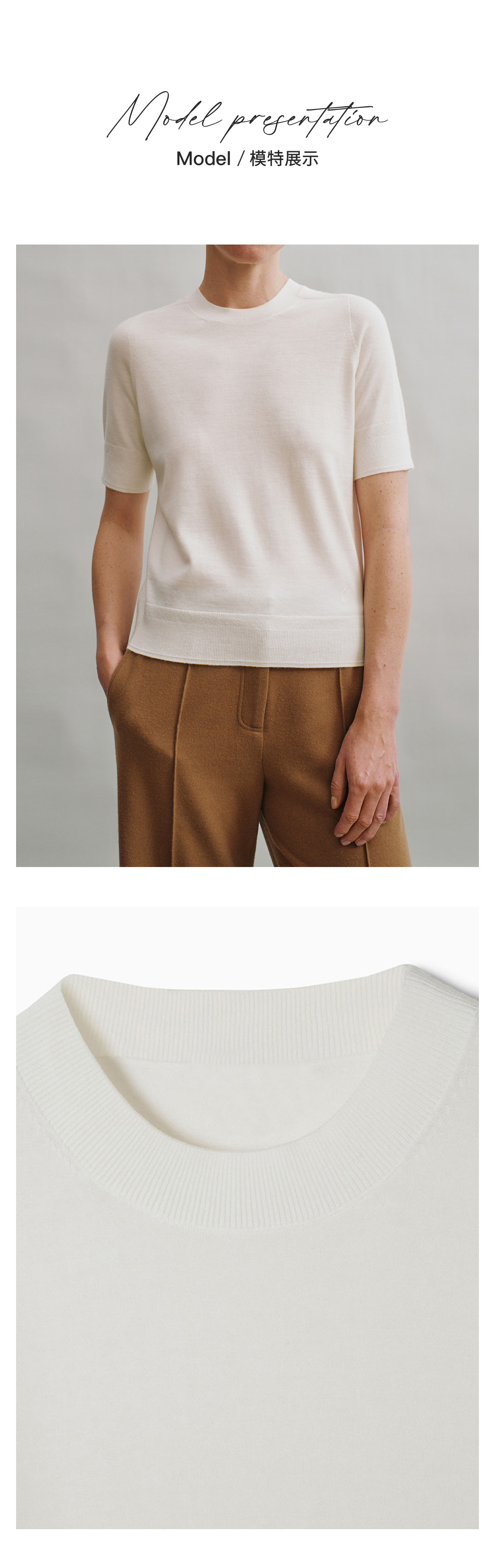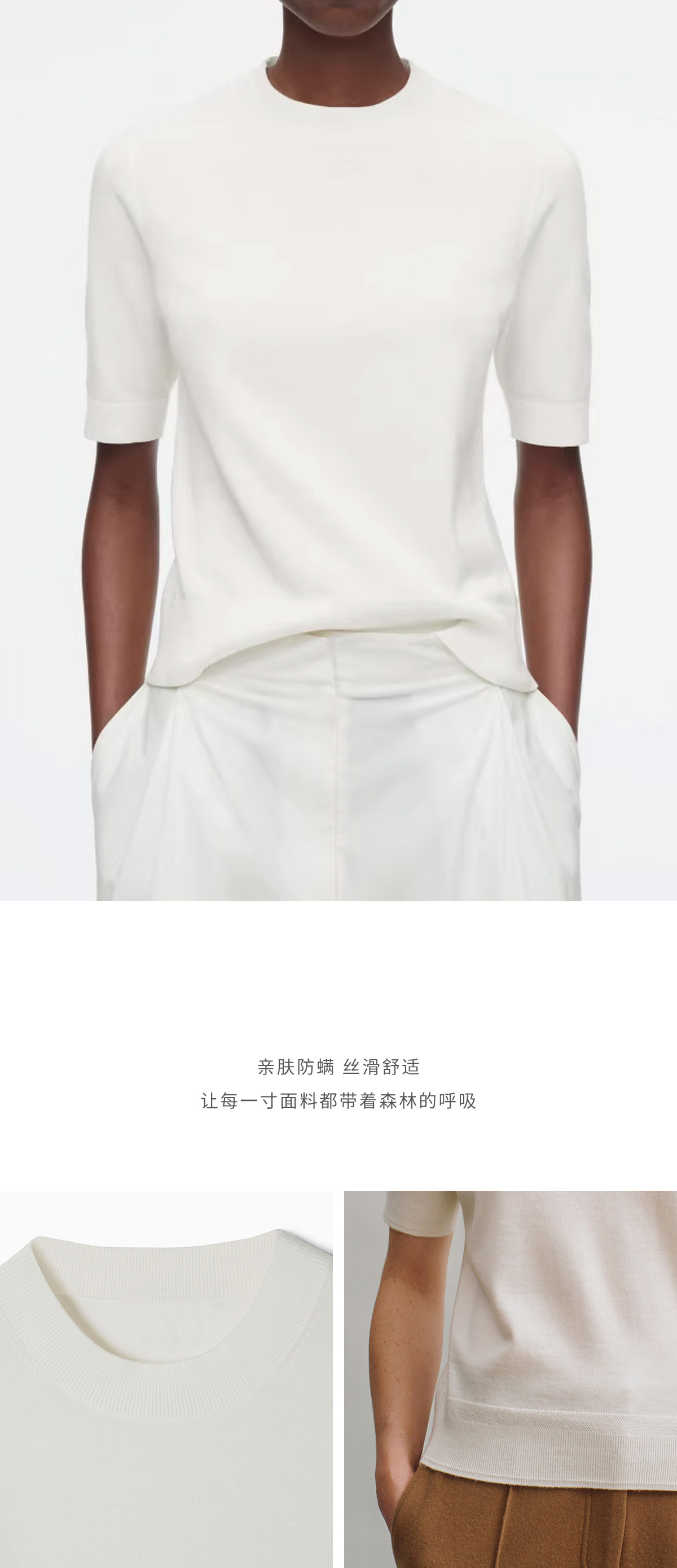COS 여성 의류 표준 라운드 넥 반팔 니트 올 매치 티셔츠 라이트 화이트 탑 여름