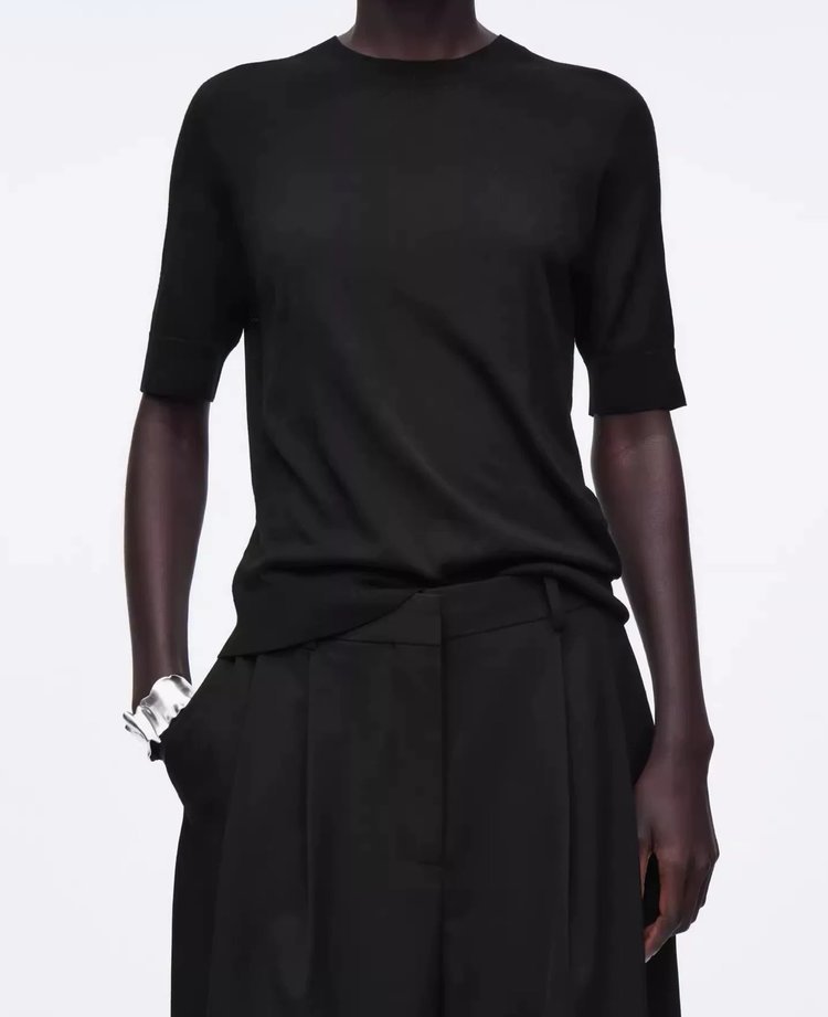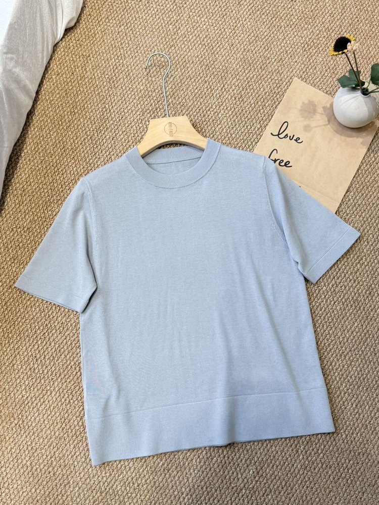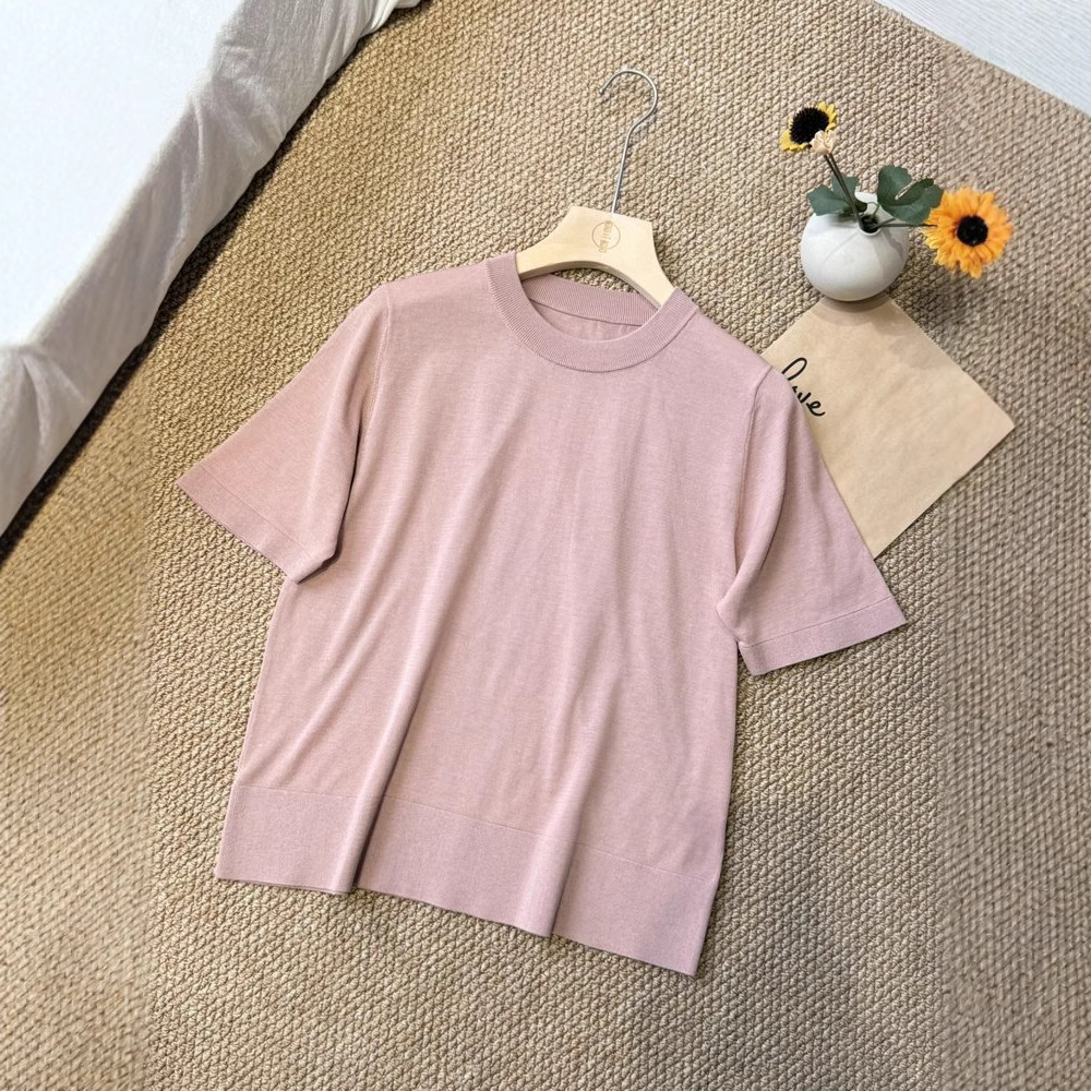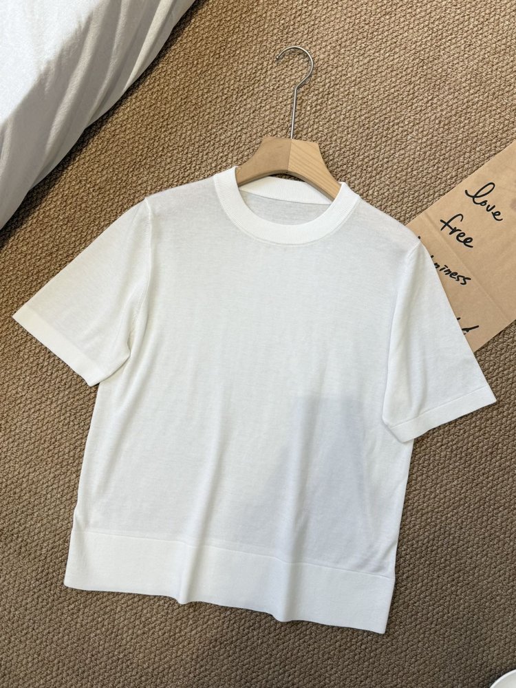 COS 여성 의류 표준 라운드 넥 반팔 니트 올 매치 티셔츠 라이트 화이트 탑 여름