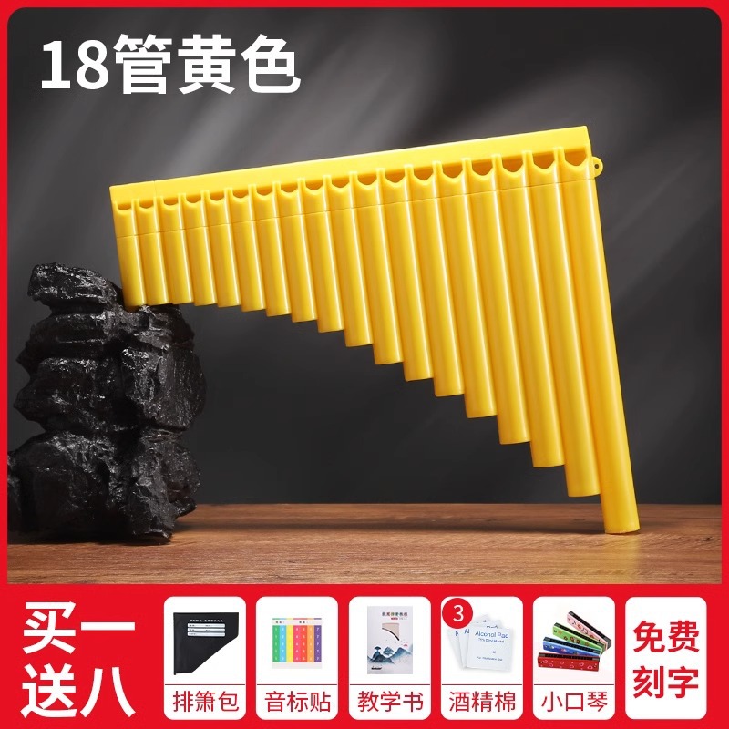 • 팬 플루트 18관 노란색 [1개 구매 시 8개 무료]