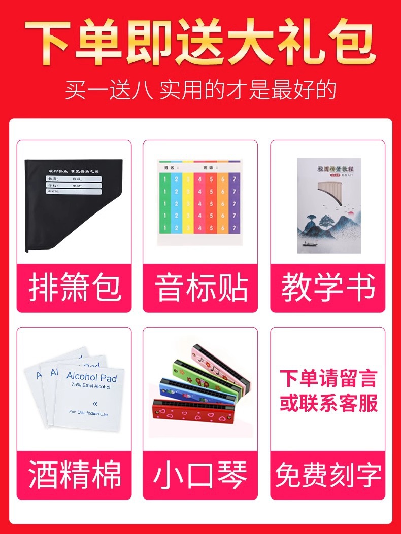 • 팬 플루트 18관 로즈 레드 [1개 구매시 4개 무료]