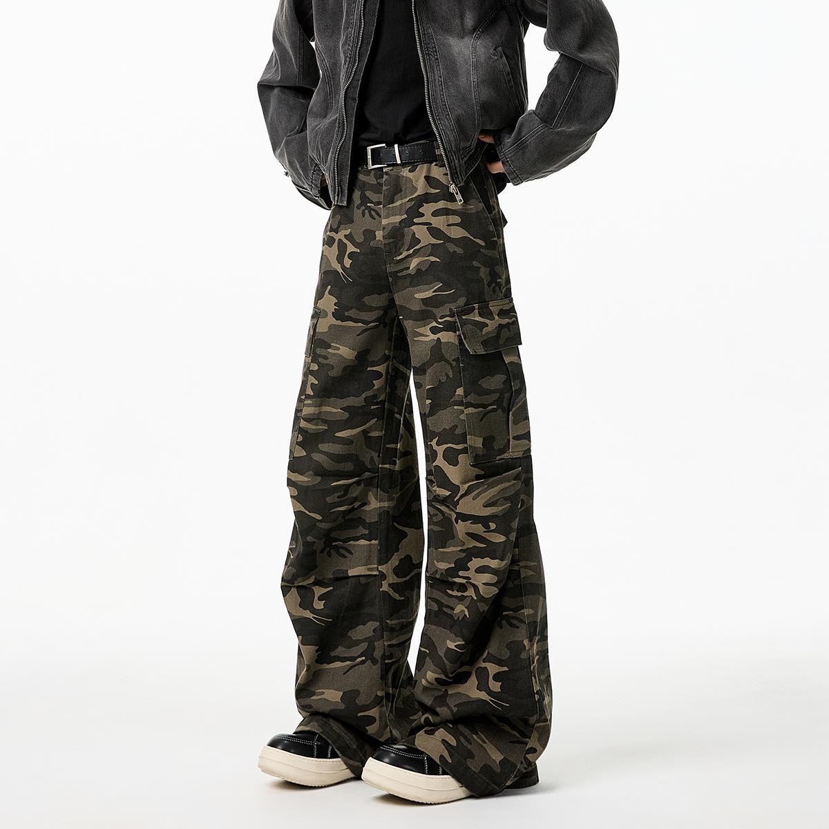 헤비 카모 팬츠 남성 봄 신작 미국 트렌디 브랜드 힙합 플리츠 루즈 와이드 레그 마이크로 플레어 워크 팬츠스토어 가기