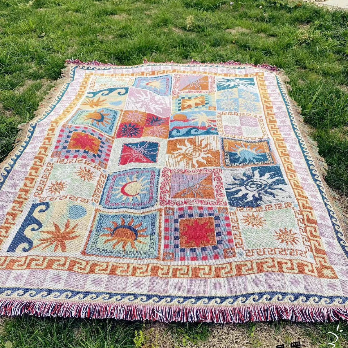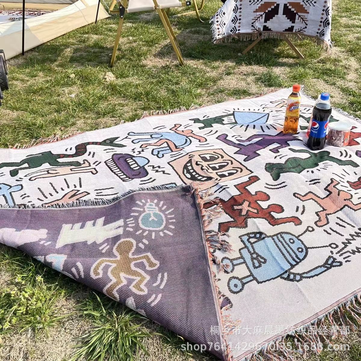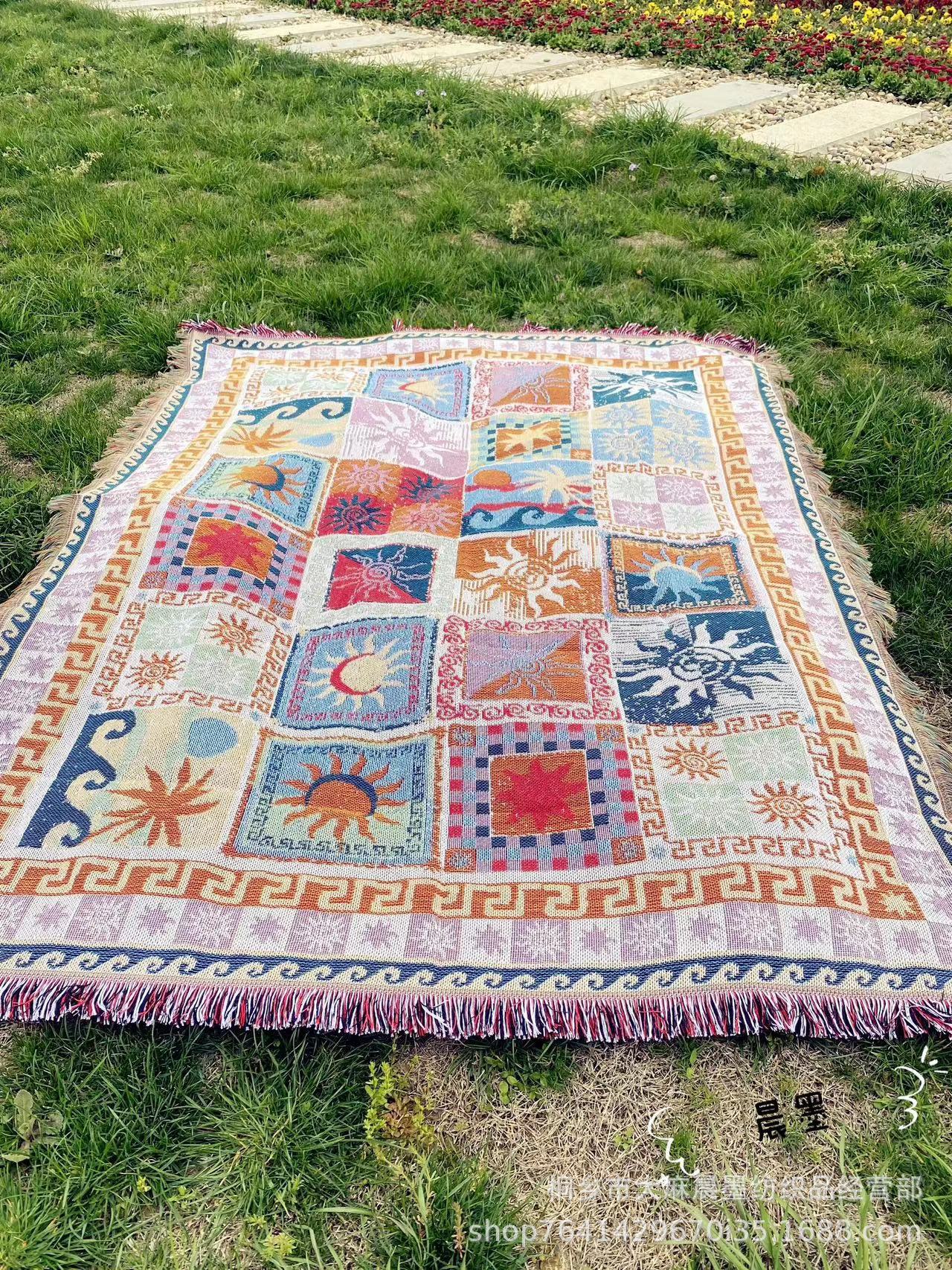 맞춤형 폴리 에스테르 코튼 커버 담요 보헤미안 야외 캠핑 담요 RV Nap 커버 담요 장식 테이블 천 텐트 캠핑 담요스토어 가기