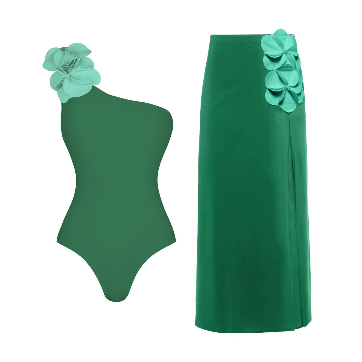 • 녹색 원숄더 수영복