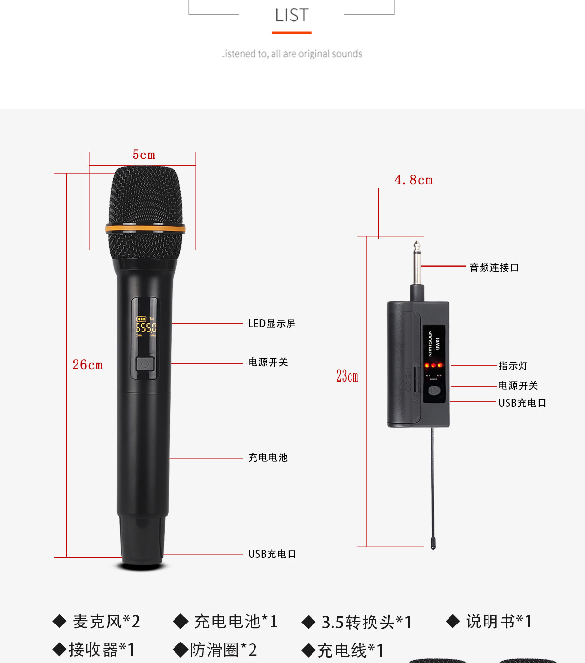 국경 간 무역 라이브 방송 노래방 1-2 마이크 U 세그먼트 FM 무선 충전 범용 마이크 마이크 제조업체