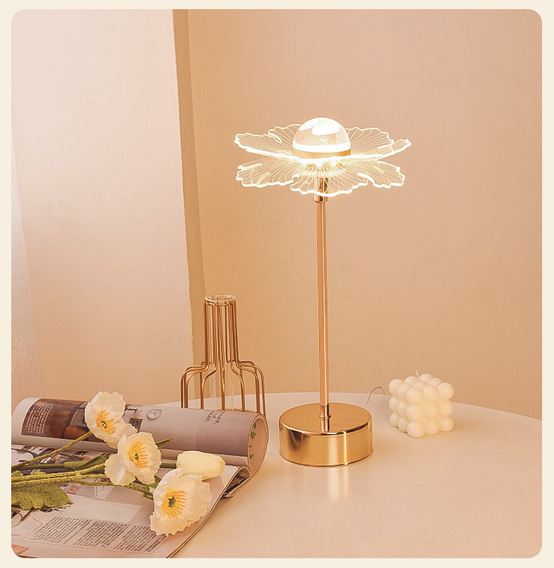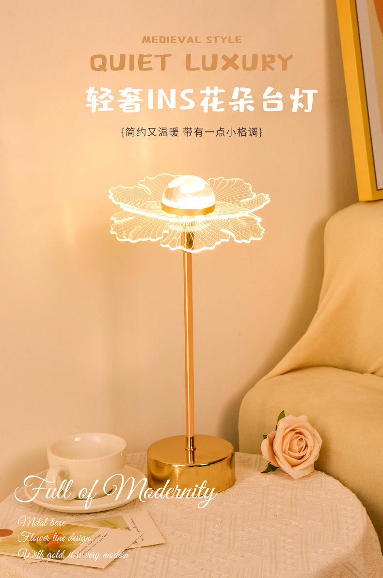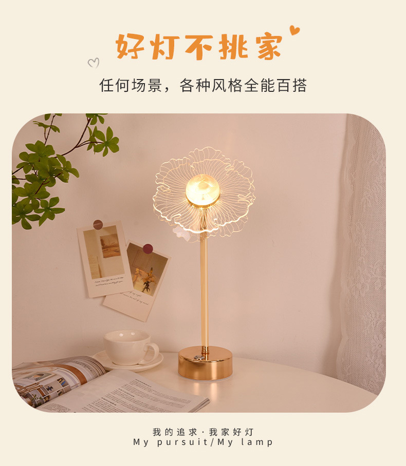 심플한 나비 분위기 장식 테이블 램프 소녀 침실용 크로스보더 신제품 아크릴 무선 충전 꽃 모양 야간 조명