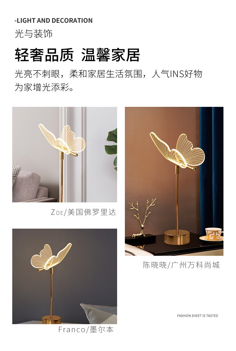 심플한 나비 분위기 장식 테이블 램프 소녀 침실용 크로스보더 신제품 아크릴 무선 충전 꽃 모양 야간 조명스토어 가기