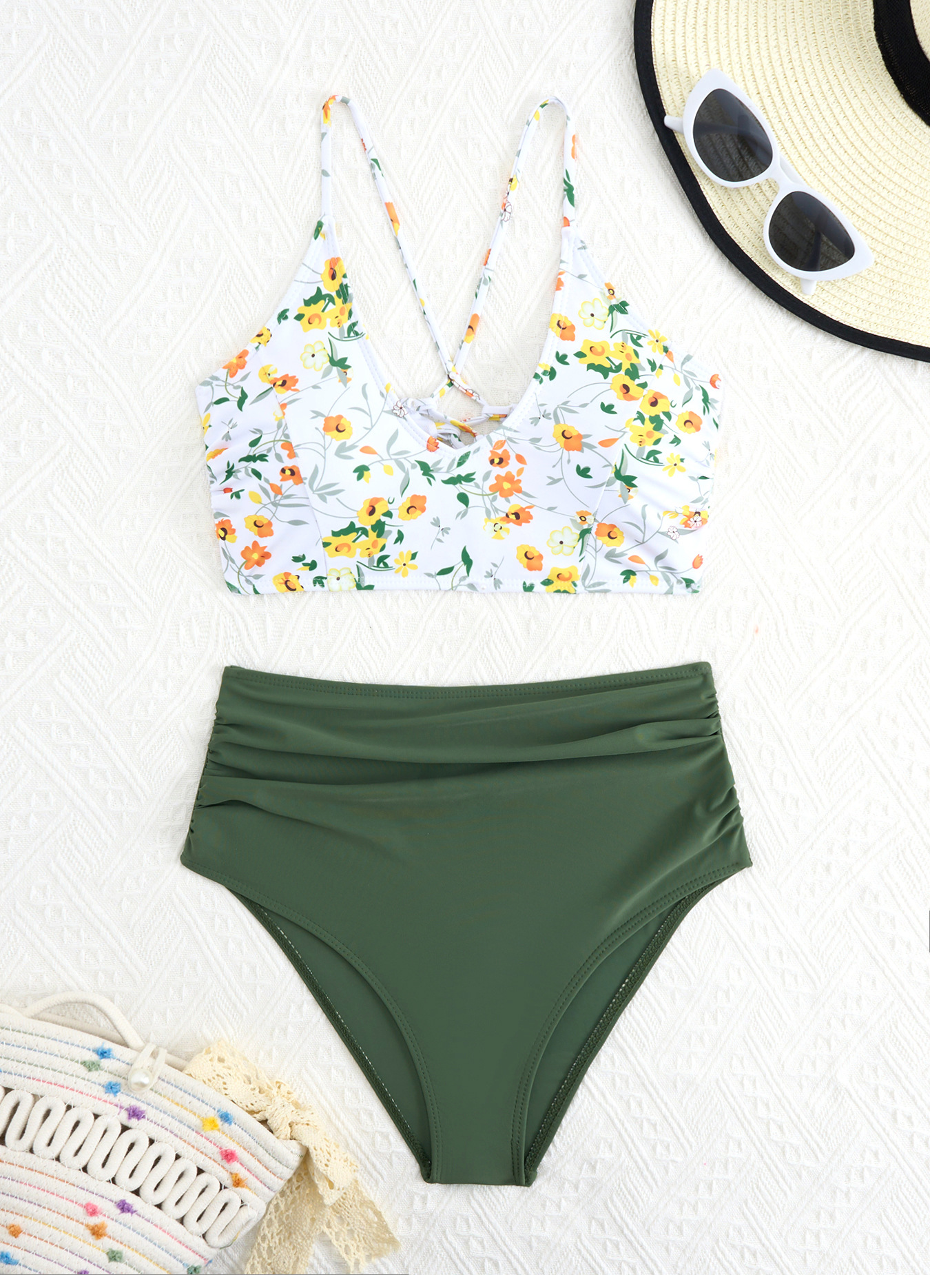 Tenglong 2025 새로운 대외 무역 꽃무늬 스플릿 하이웨이스트 수영복 비키니 섹시한 스트랩 크로스보더 아마존