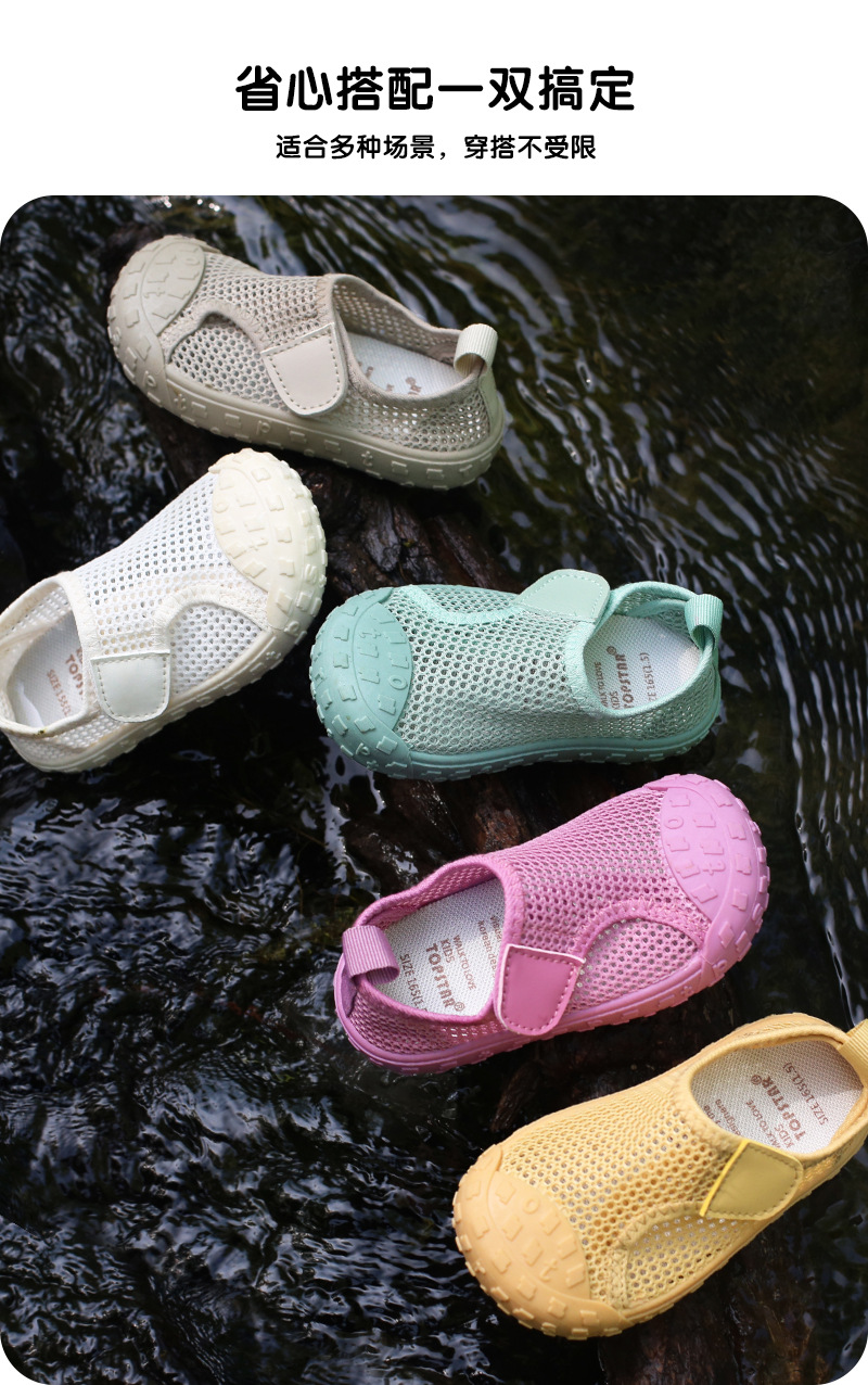Topstar 어린이 운동화 2025 여름 여성 메쉬 신발 통기성 메쉬 표면 소년 흰색 신발 부드러운 단독 어린이 신발스토어 가기