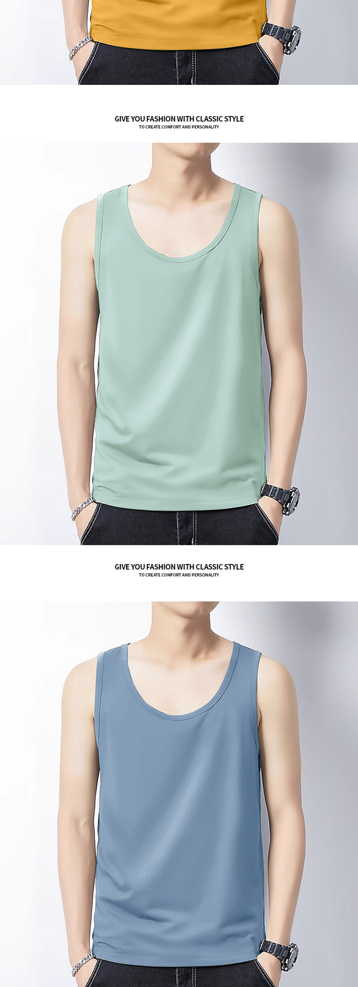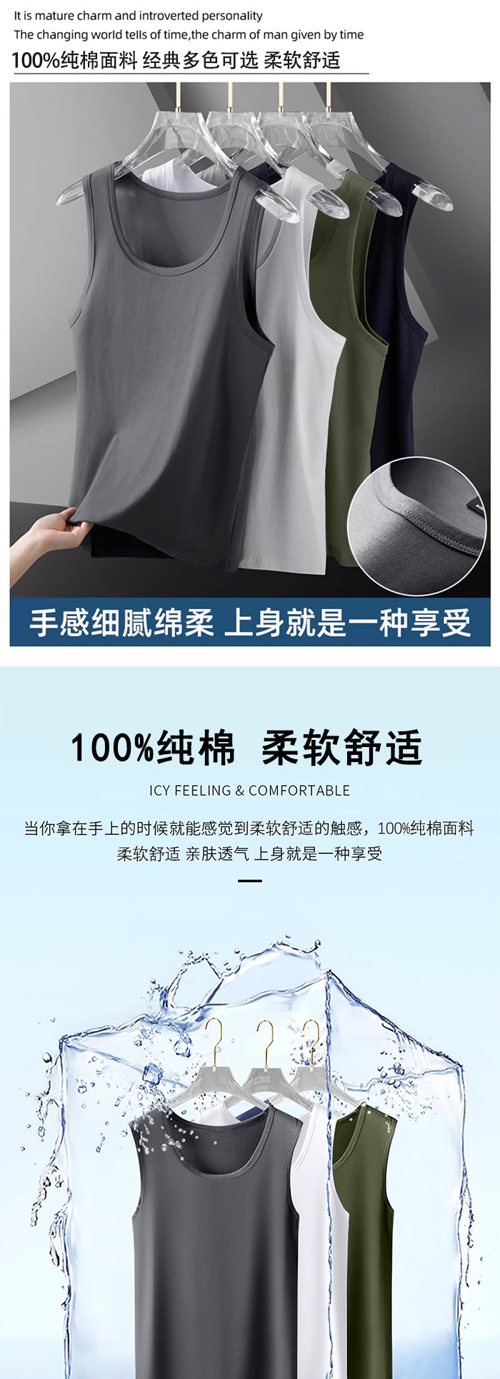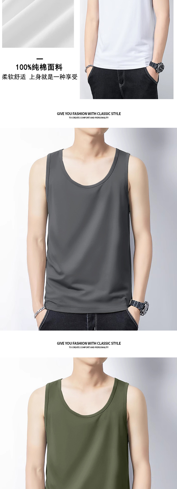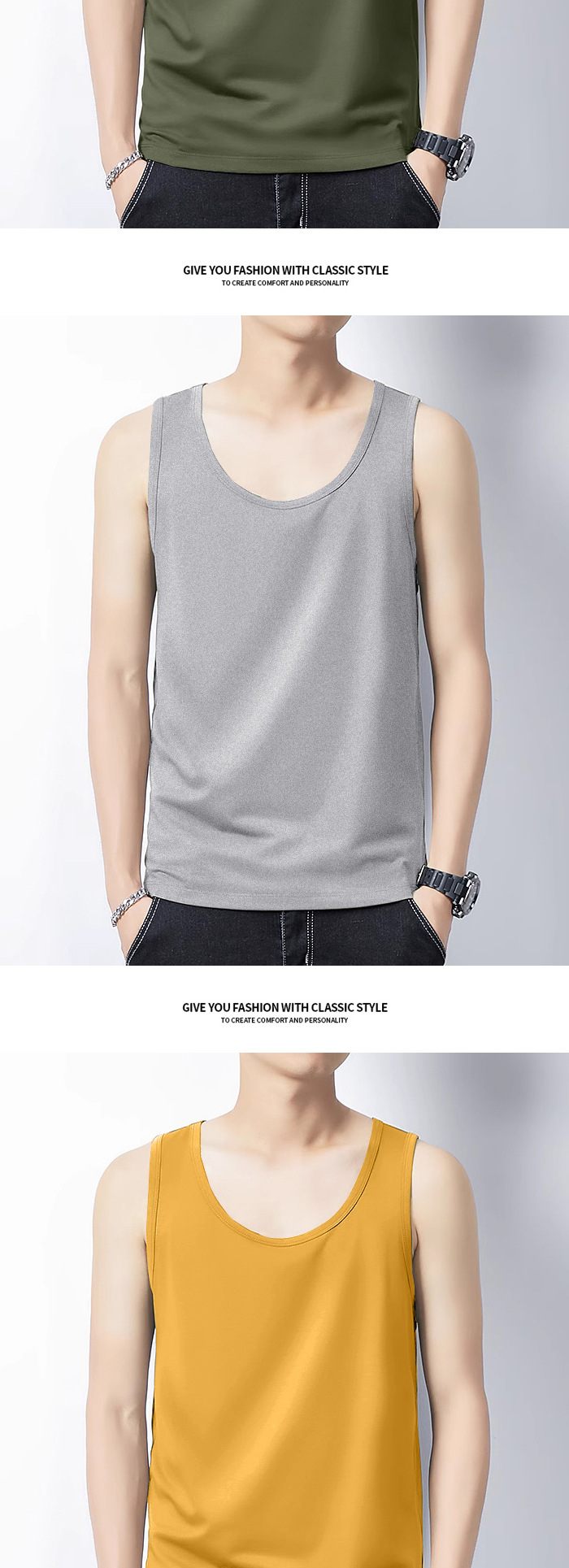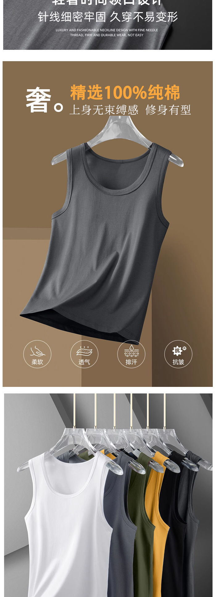 캐주얼 남성 라운드 넥 조끼 여름 얇은 트렌디 다목적 순수 코튼 민소매 티셔츠 바닥 조끼 언더 셔츠 조끼