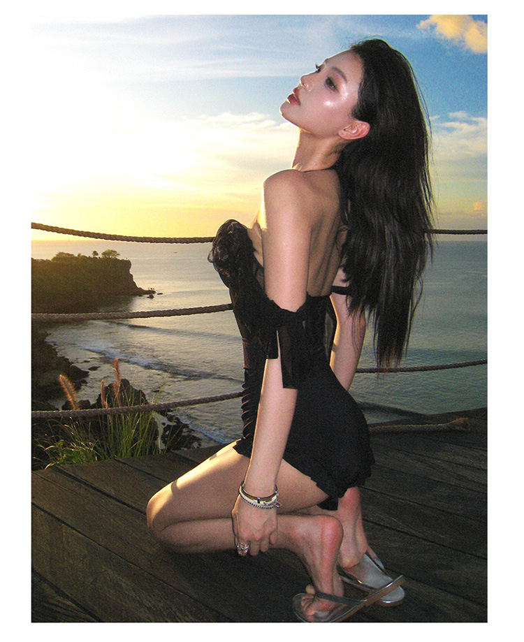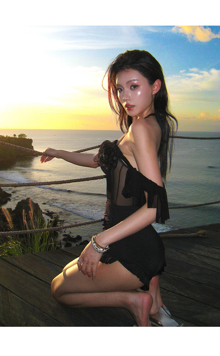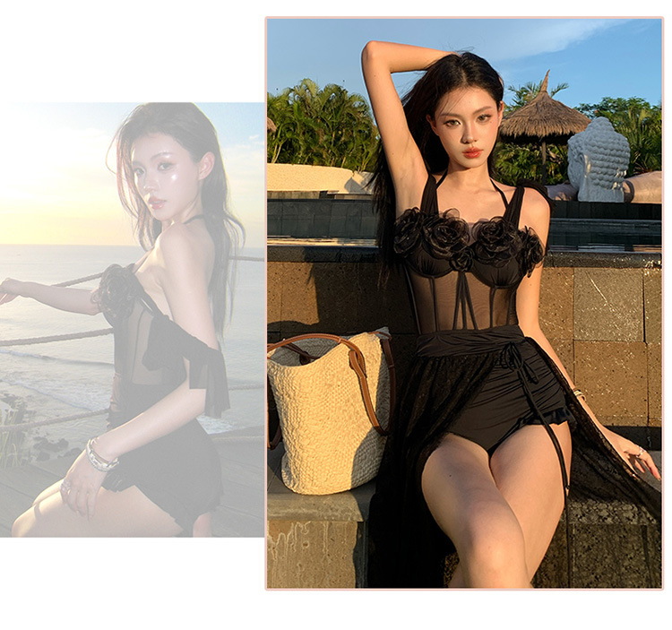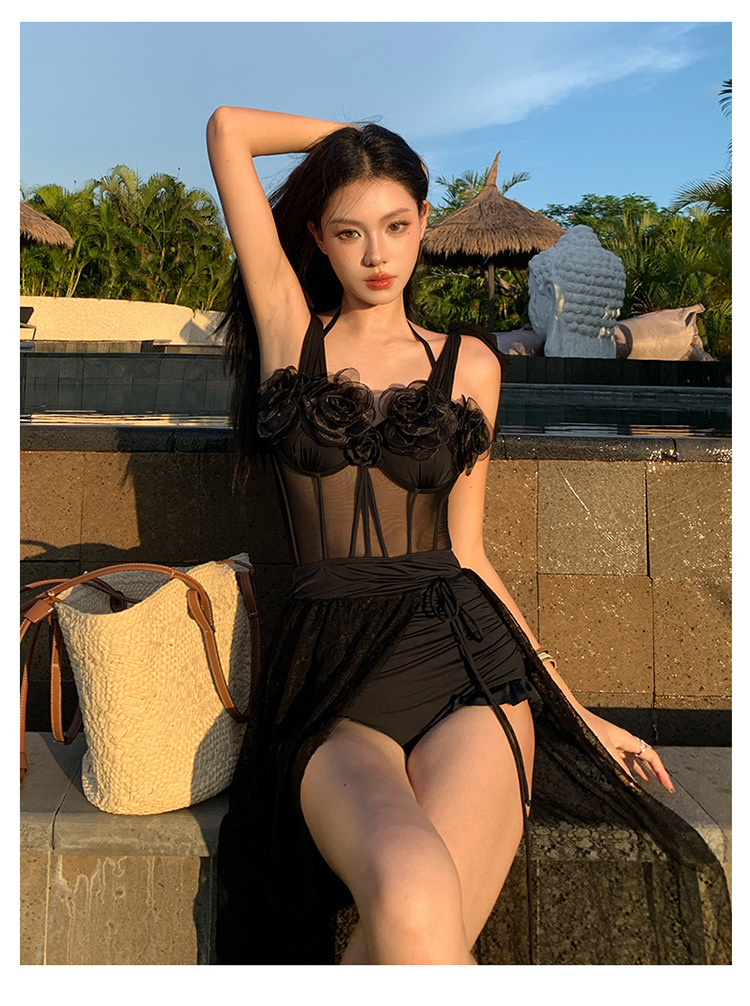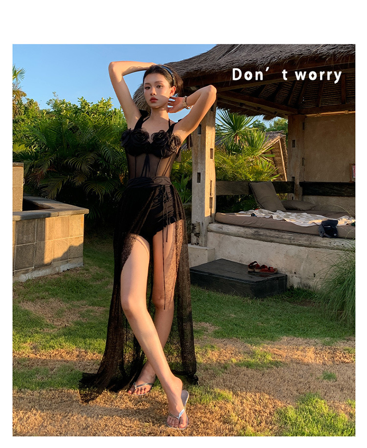 여성용 원피스 투피스 수영복, 블랙 슬리밍, 섹시한 롱 스커트, 언더와이어 수영복, 온천, 하이엔드, 순수한 섹시 스타일스토어 가기