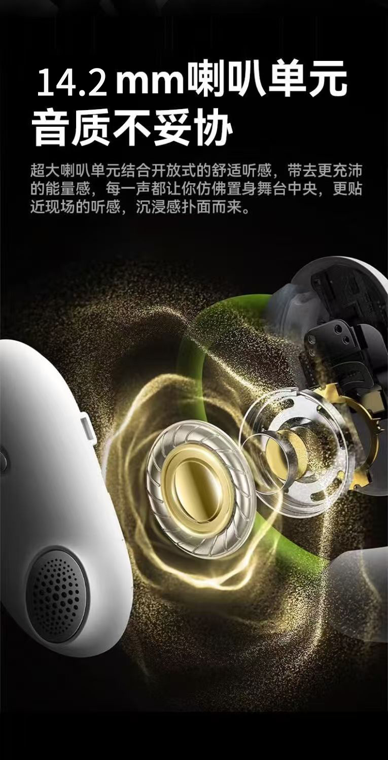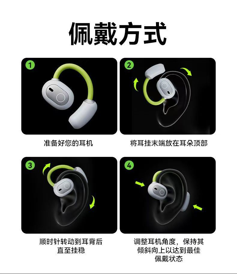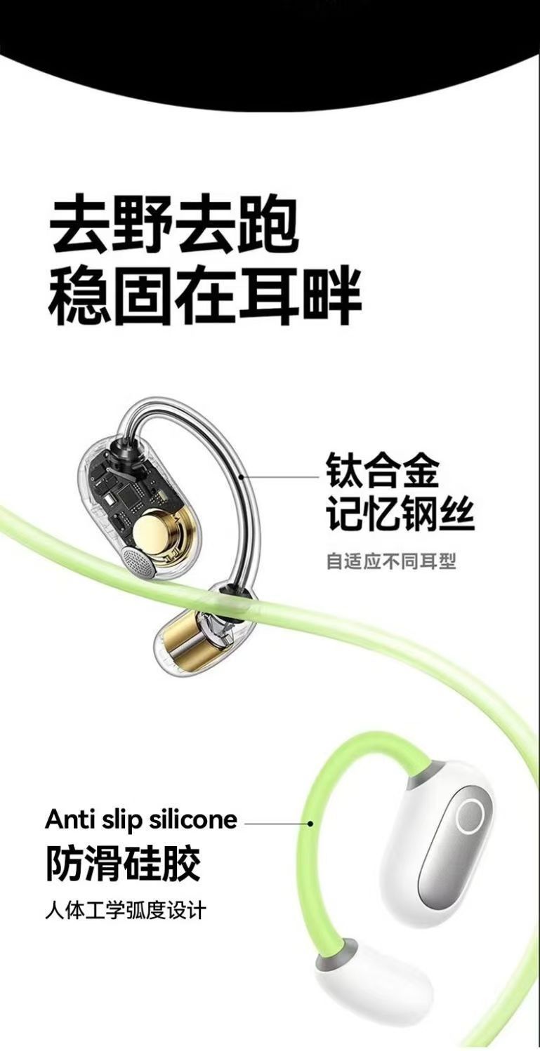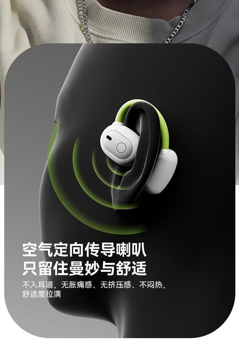 새로운 무선 블루투스 헤드셋은 OWS 개방형 귀를 착용하기 위해 오랫동안 고통스럽지 않습니다. 높은 음질 긴 배터리 수명
