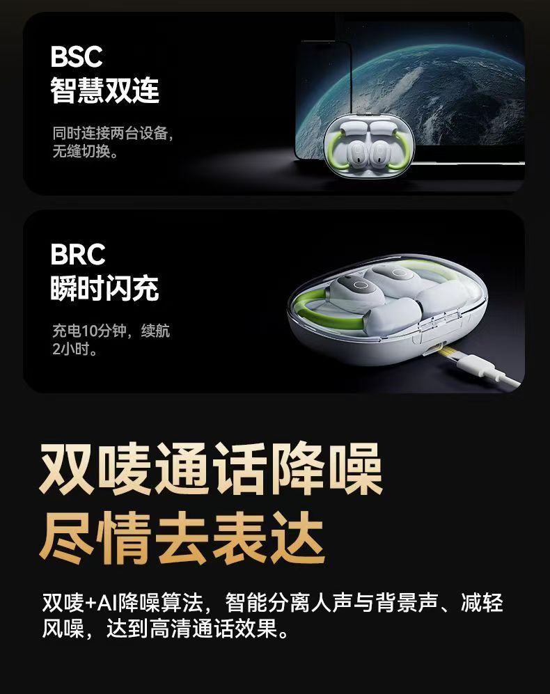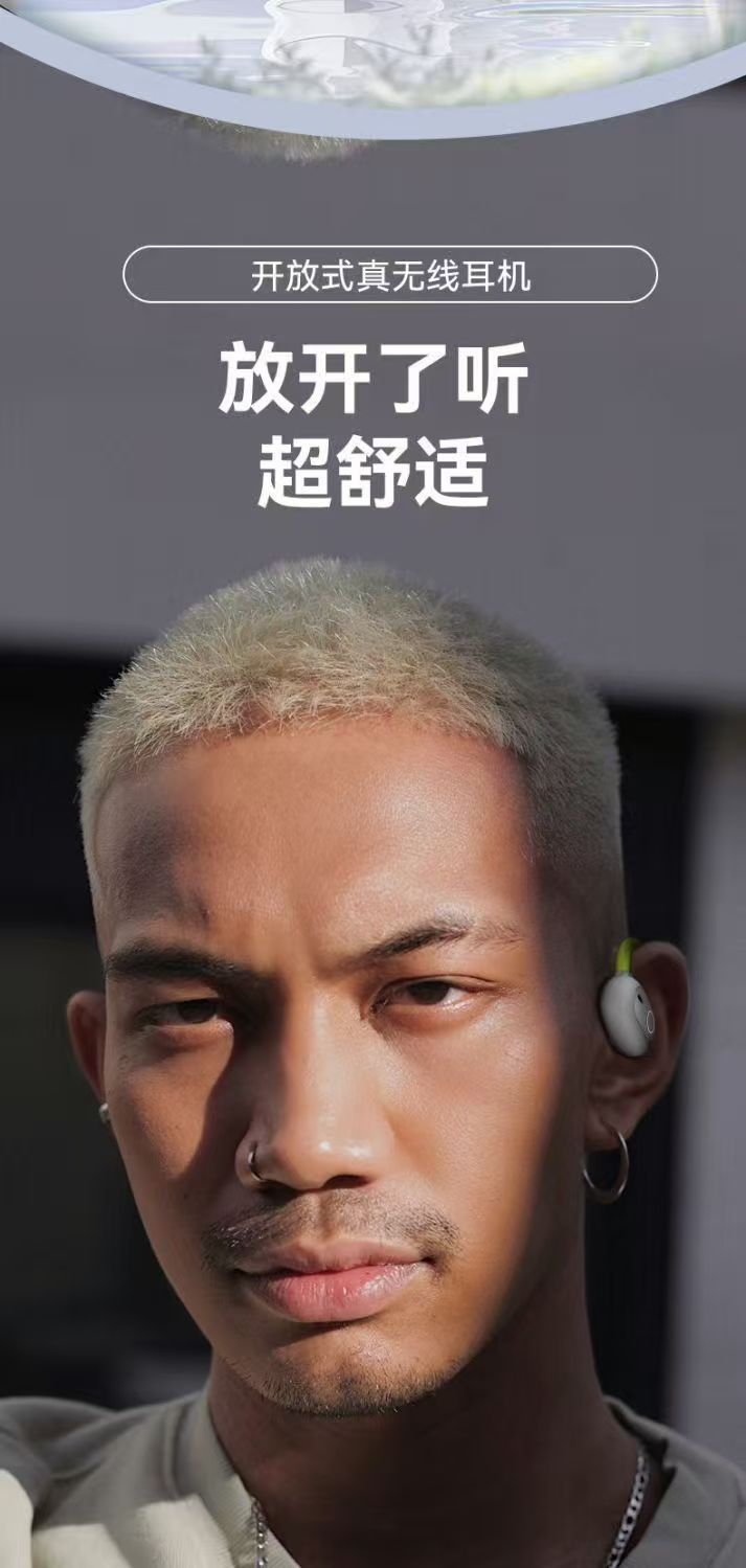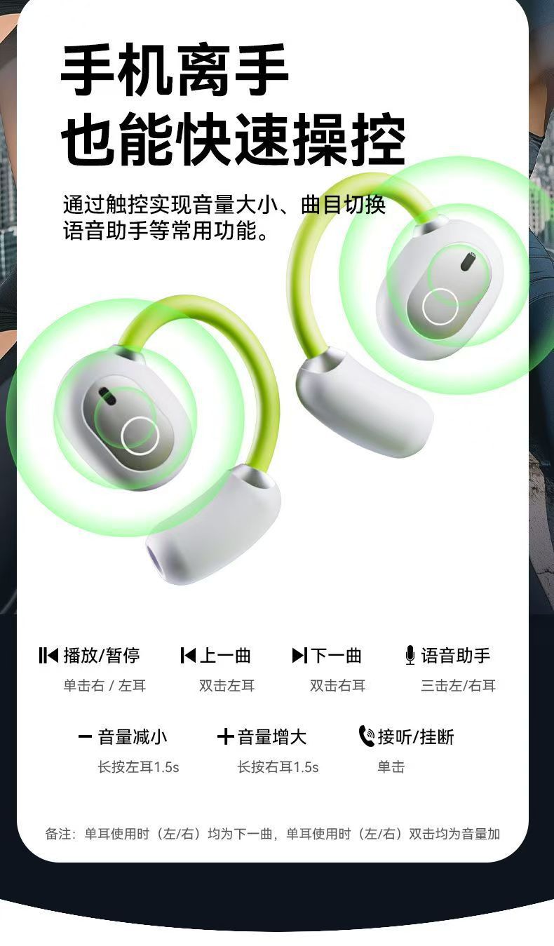 새로운 무선 블루투스 헤드셋은 OWS 개방형 귀를 착용하기 위해 오랫동안 고통스럽지 않습니다. 높은 음질 긴 배터리 수명