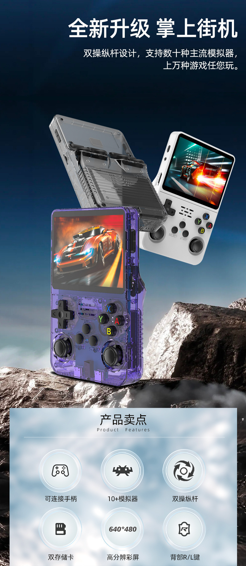 국경 간 새로운 R36S 휴대용 게임 콘솔 복고풍 TV 클래식 아케이드 휴대용 어린이 휴대용 초 고화질 조이스틱