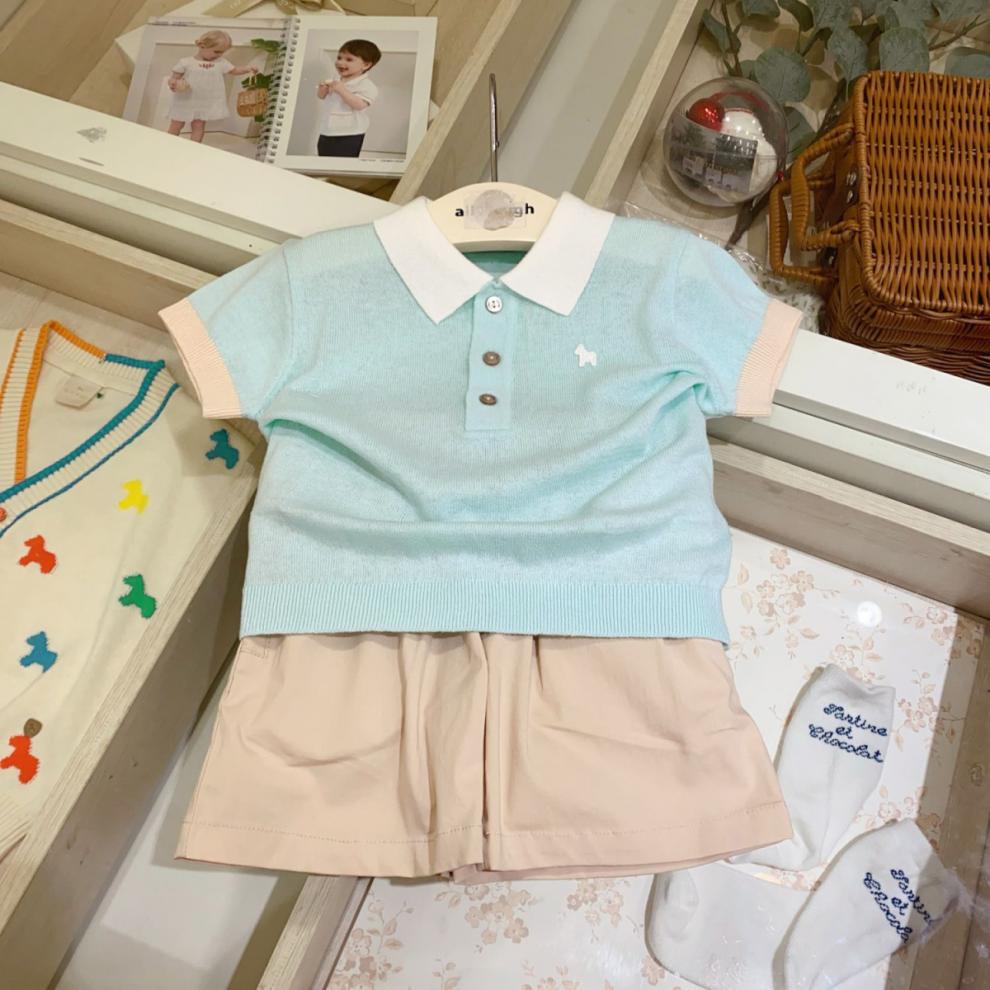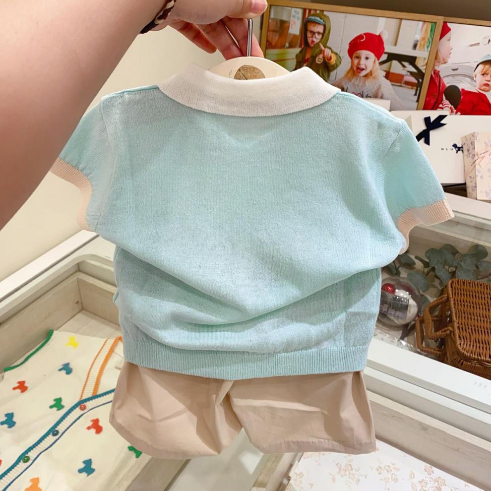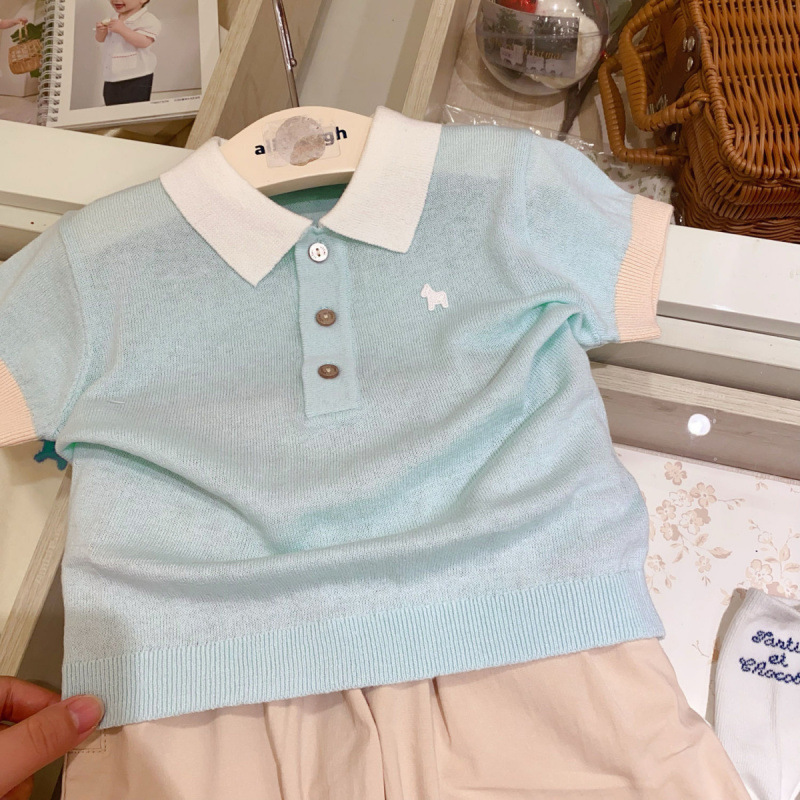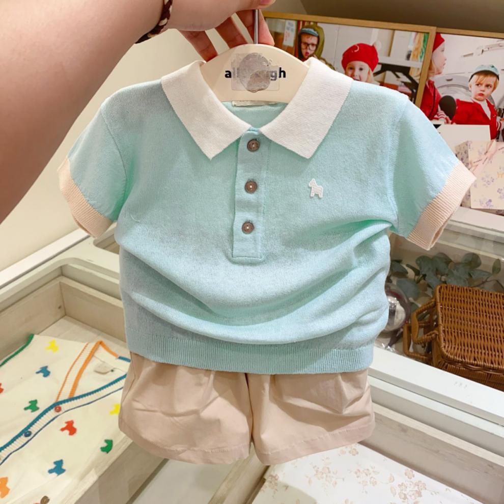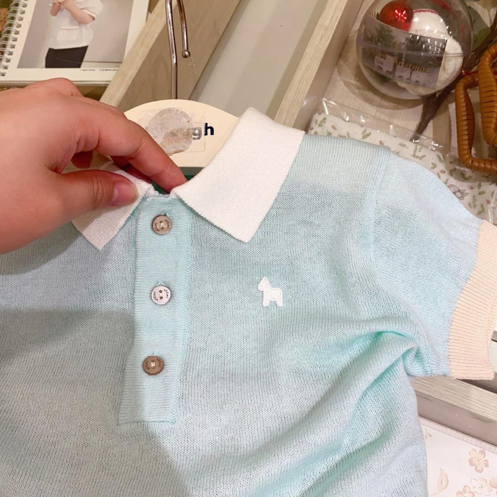 [매장 핫셀링] 한국 아동복 2025 여름 신작 남아 여아 베이비 초박형 스웨터 반팔 라펠스토어 가기