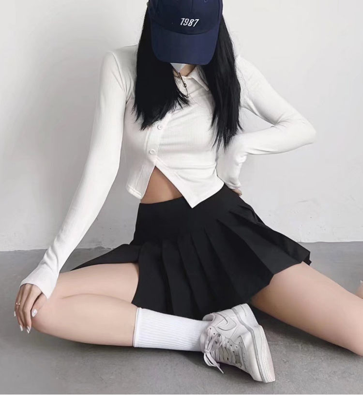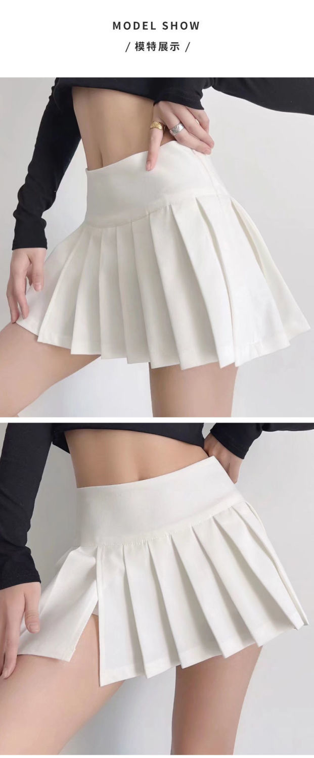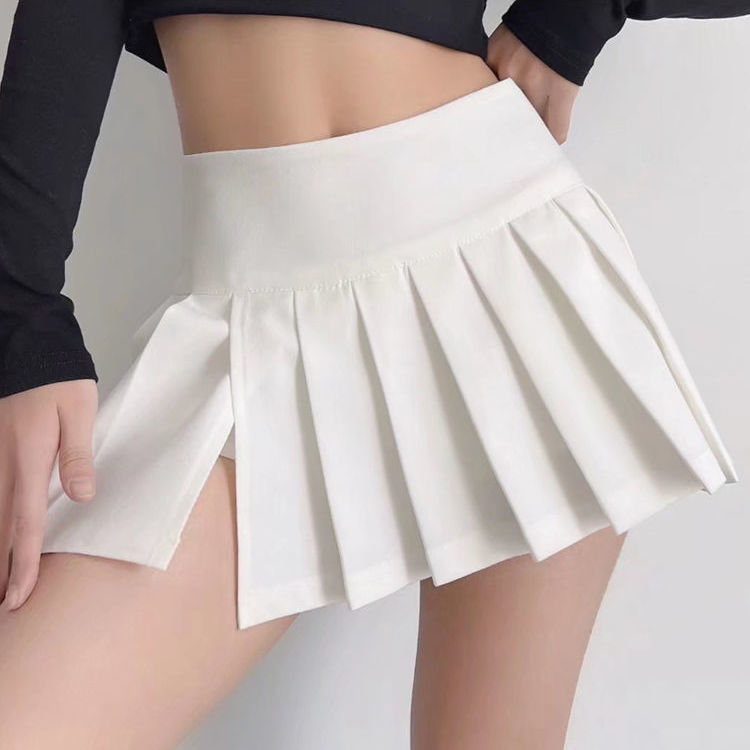 화이트 스플릿 주름 치마 여자 여름 새로운 높은 허리 A-라인 슬리밍 순수한 욕망 스커트 칼리지스토어 가기