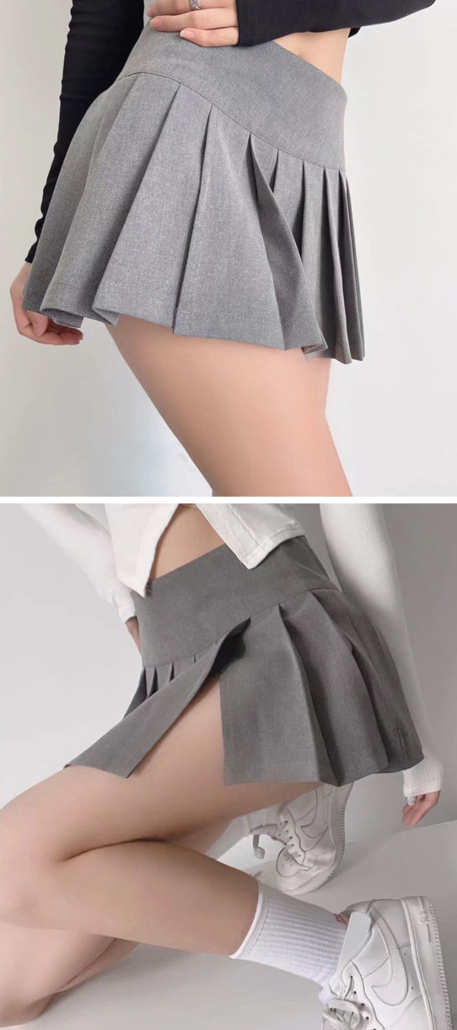 • 그레이 [슬릿 플리츠 스커트]