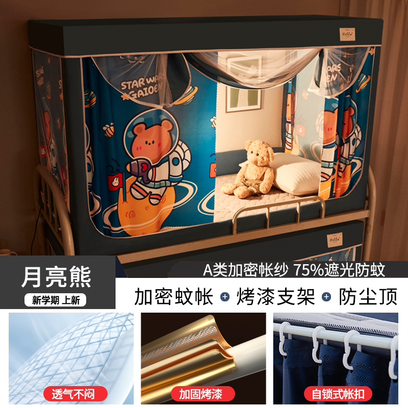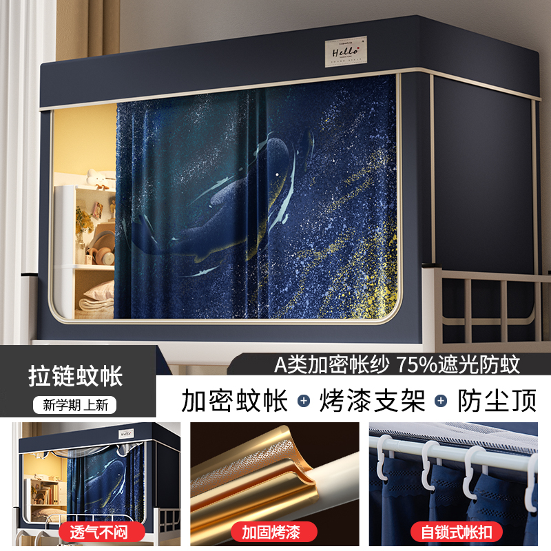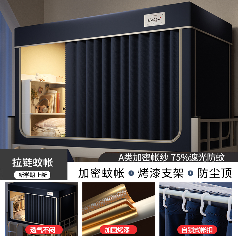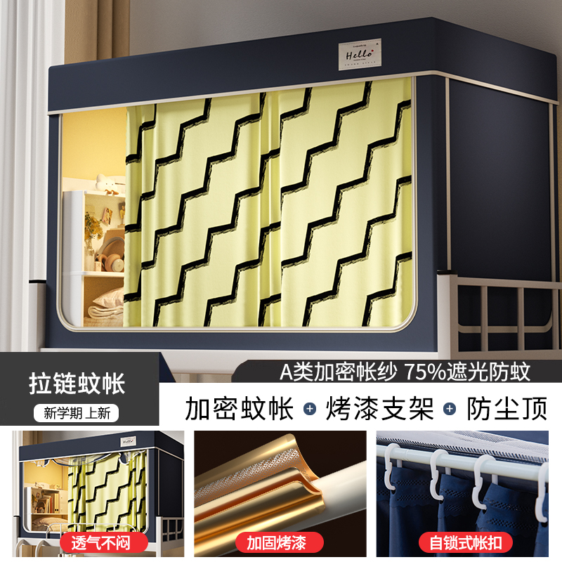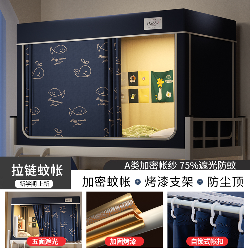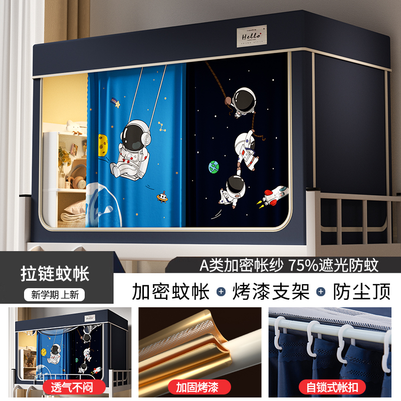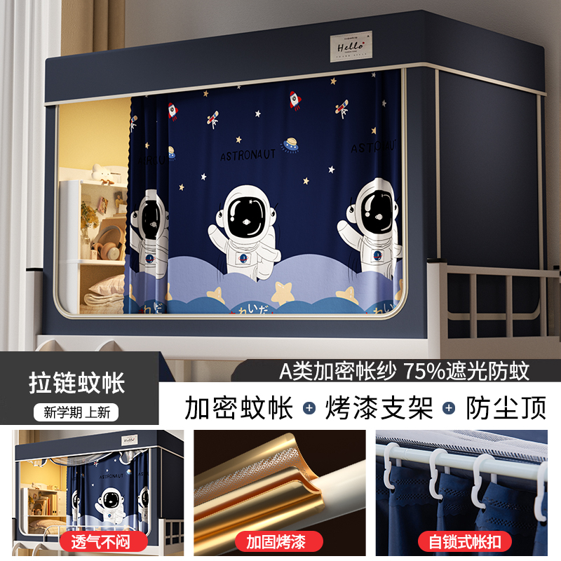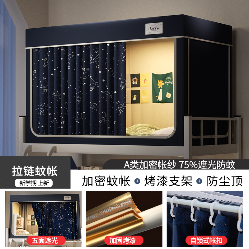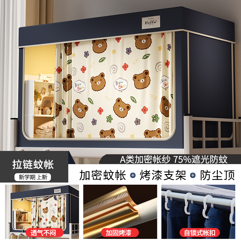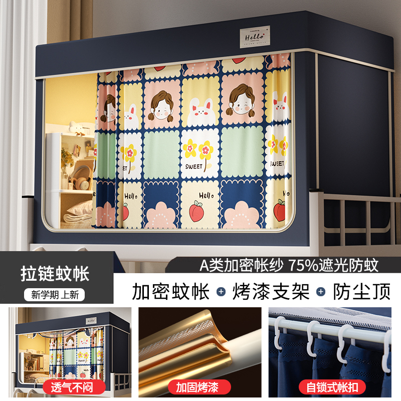 학생 기숙사 모기장 침대 커튼 차광 일체형 브래킷 완전 밀폐형 지퍼 모델 여성용 상층 및 하층 싱글 기숙사스토어 가기