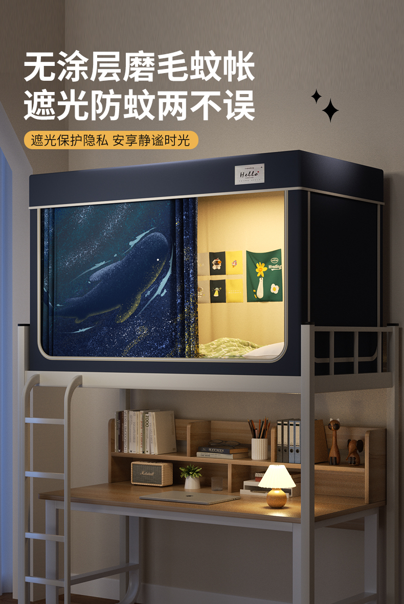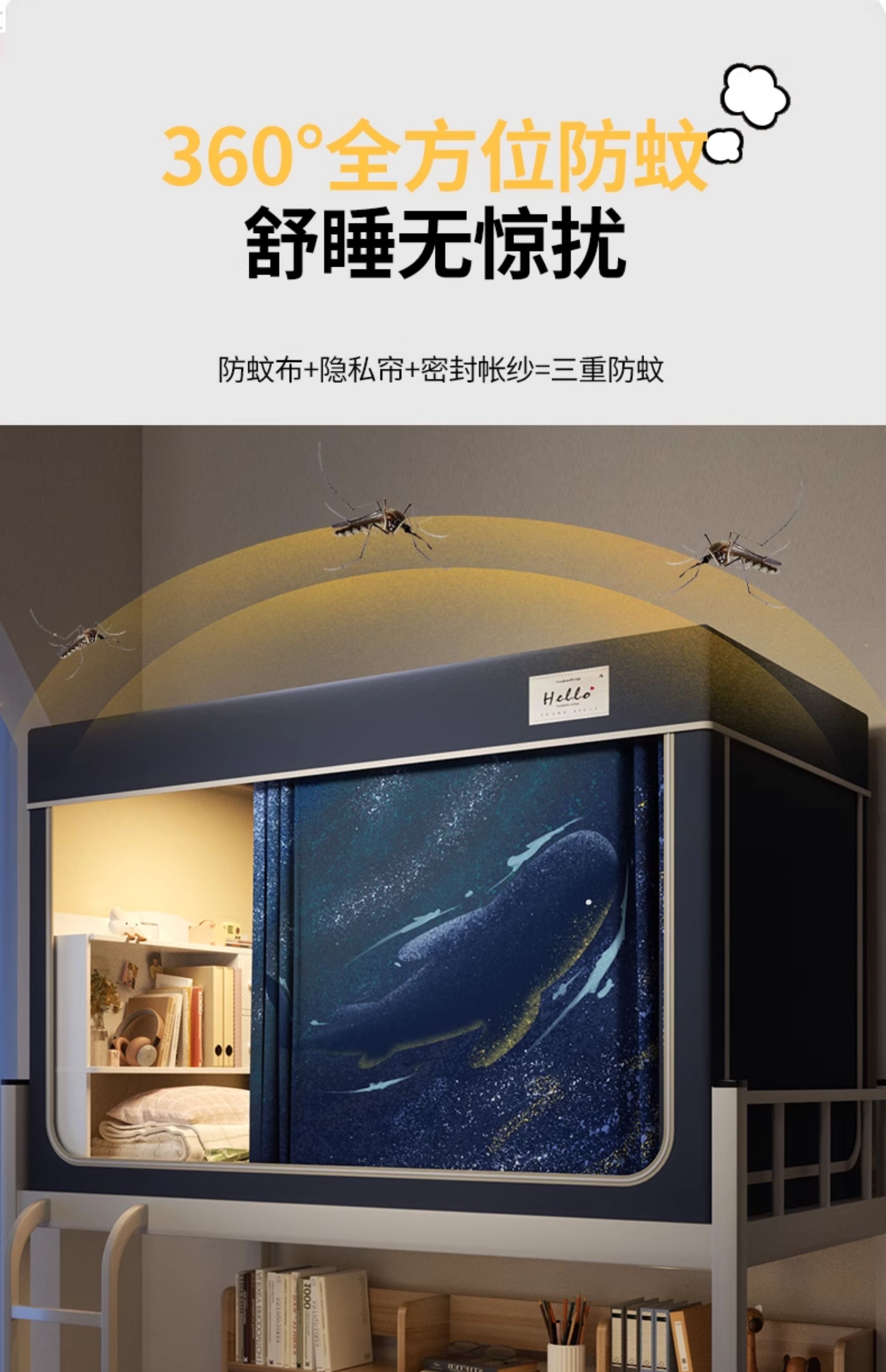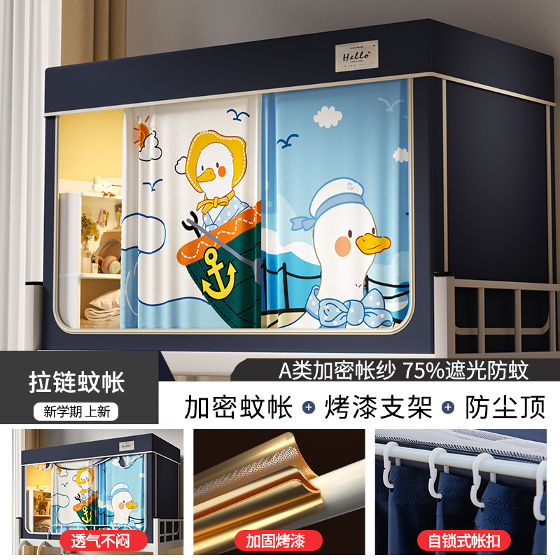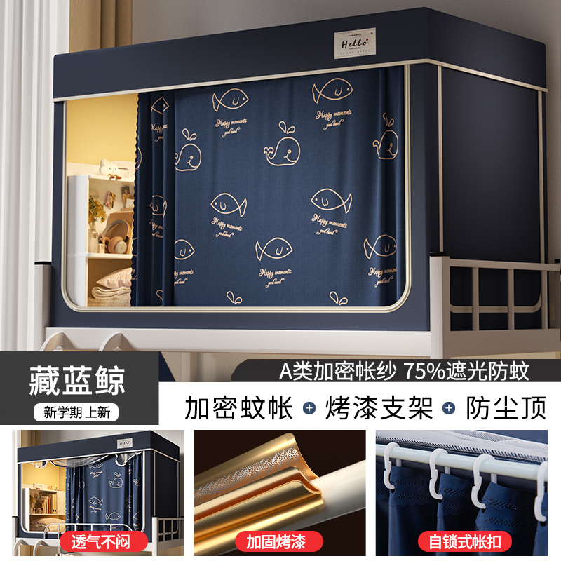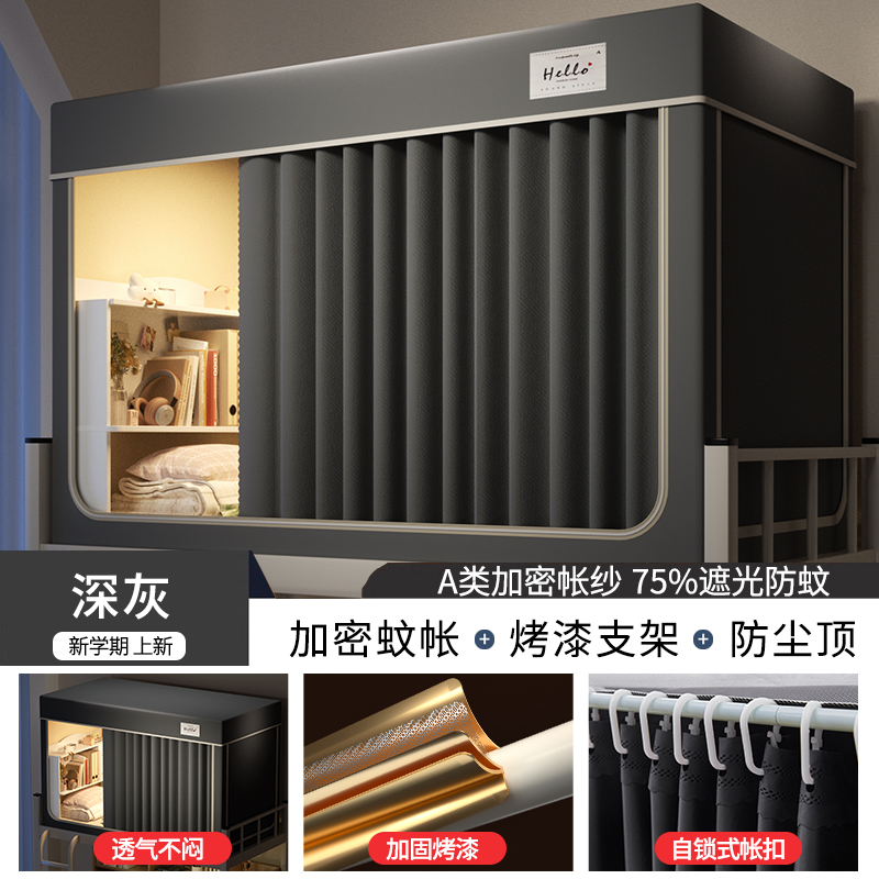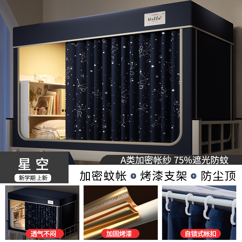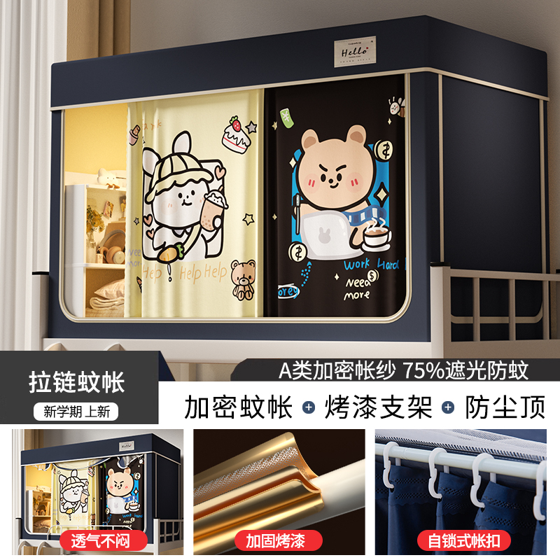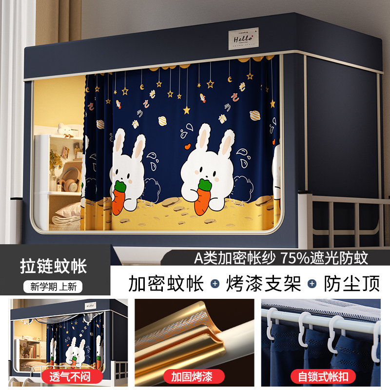 학생 기숙사 모기장 침대 커튼 차광 일체형 브래킷 완전 밀폐형 지퍼 모델 여성용 상층 및 하층 싱글 기숙사스토어 가기