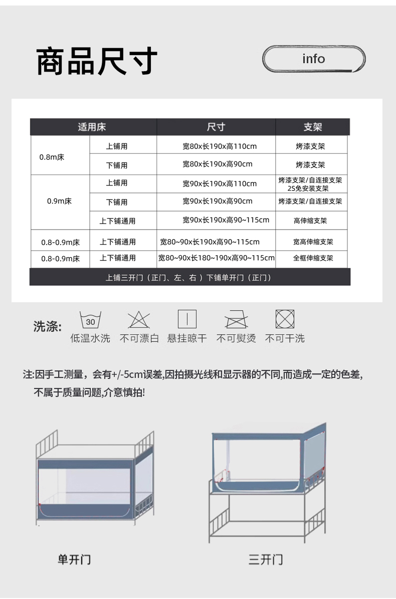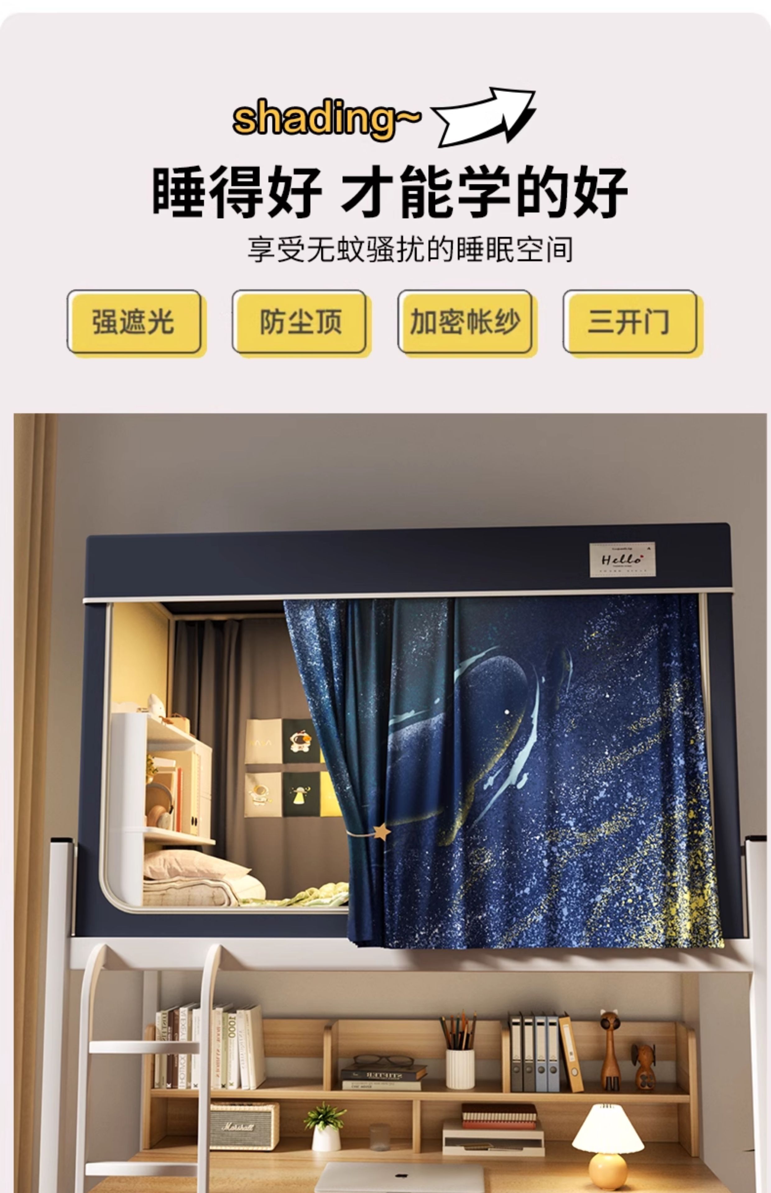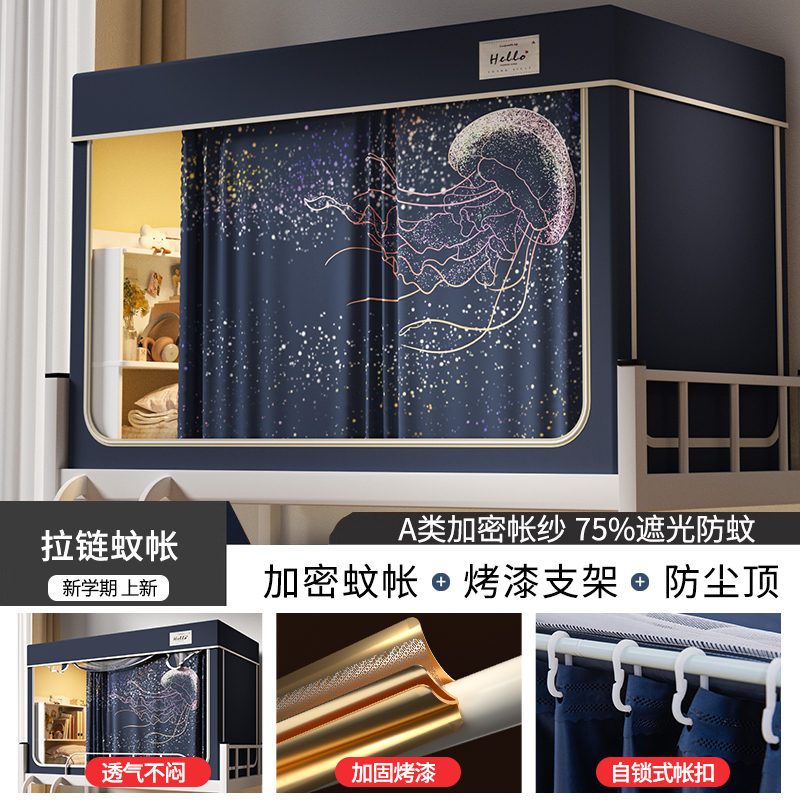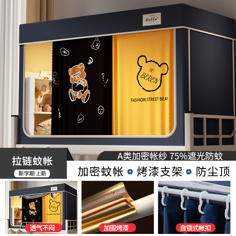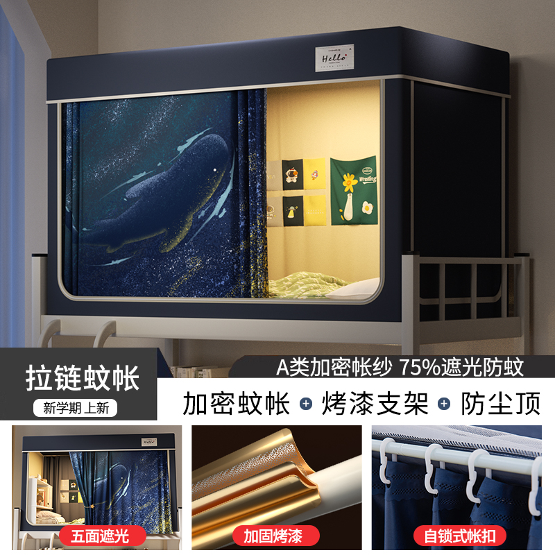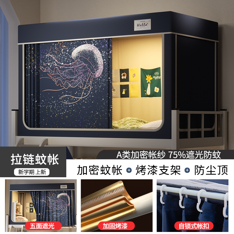 학생 기숙사 모기장 침대 커튼 차광 일체형 브래킷 완전 밀폐형 지퍼 모델 여성용 상층 및 하층 싱글 기숙사