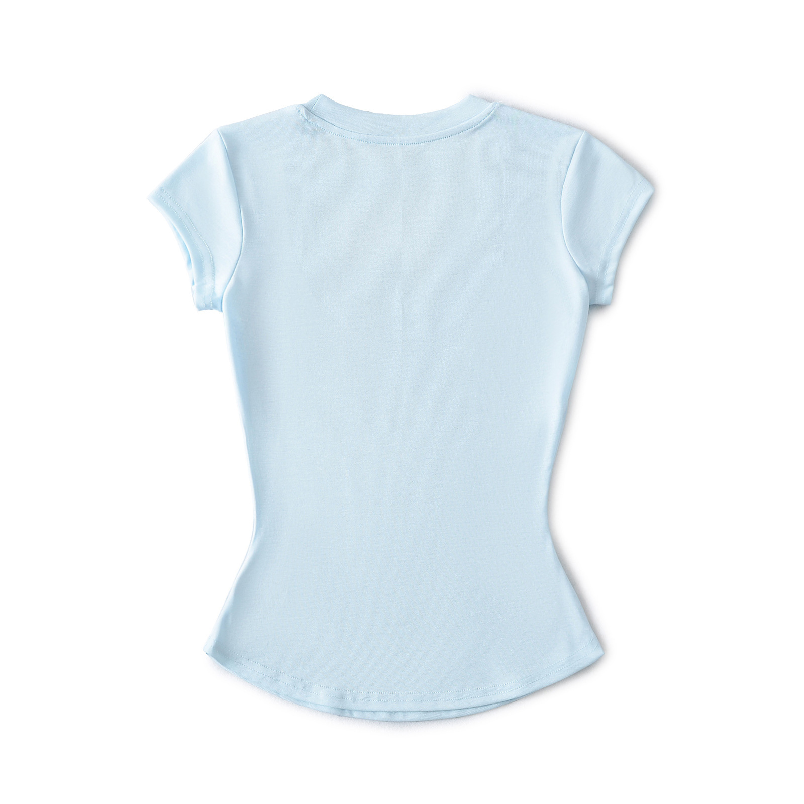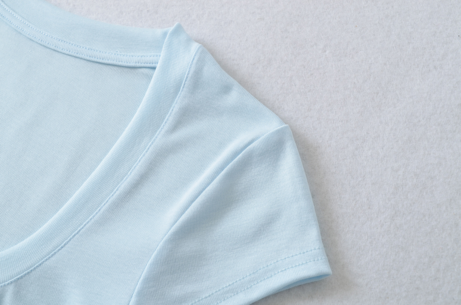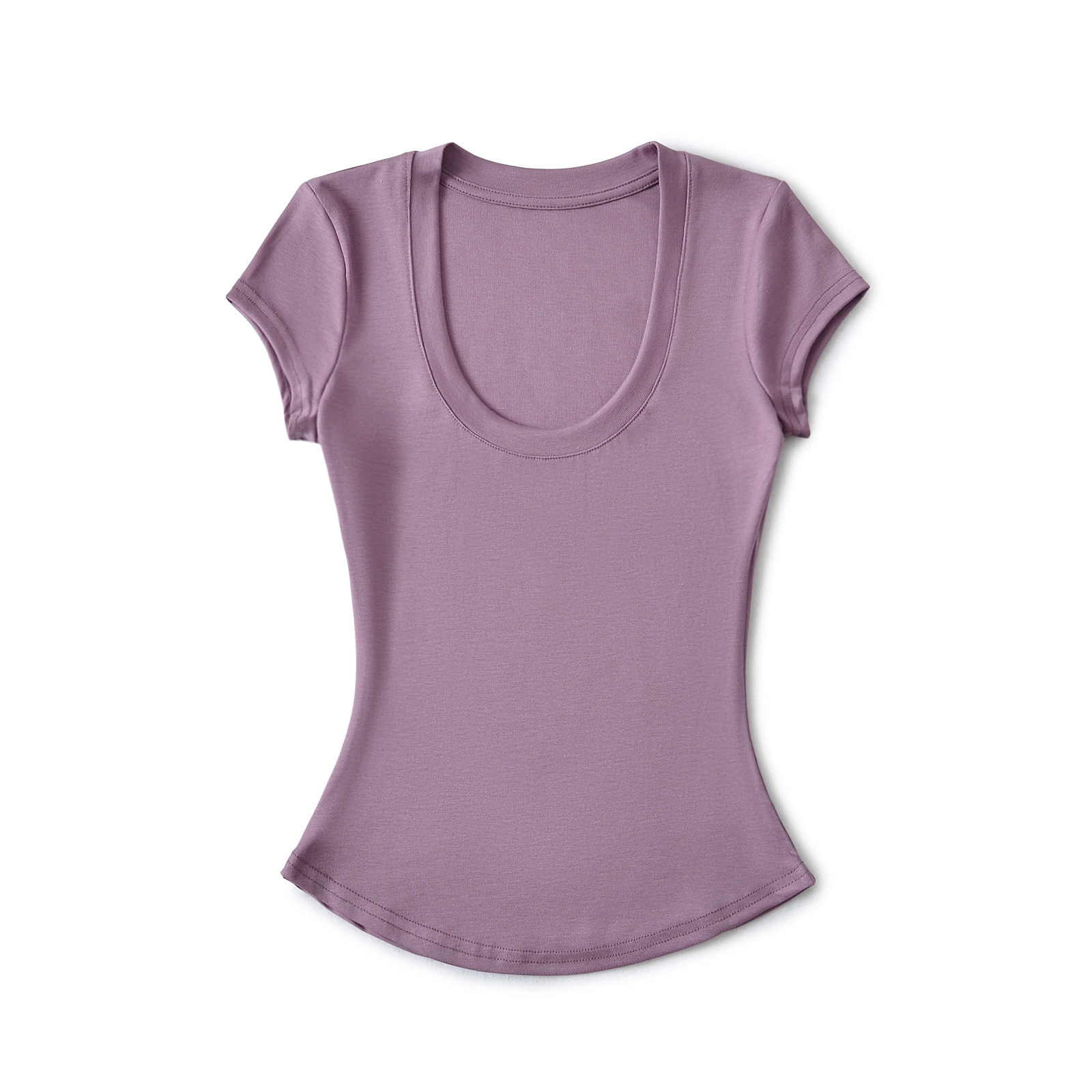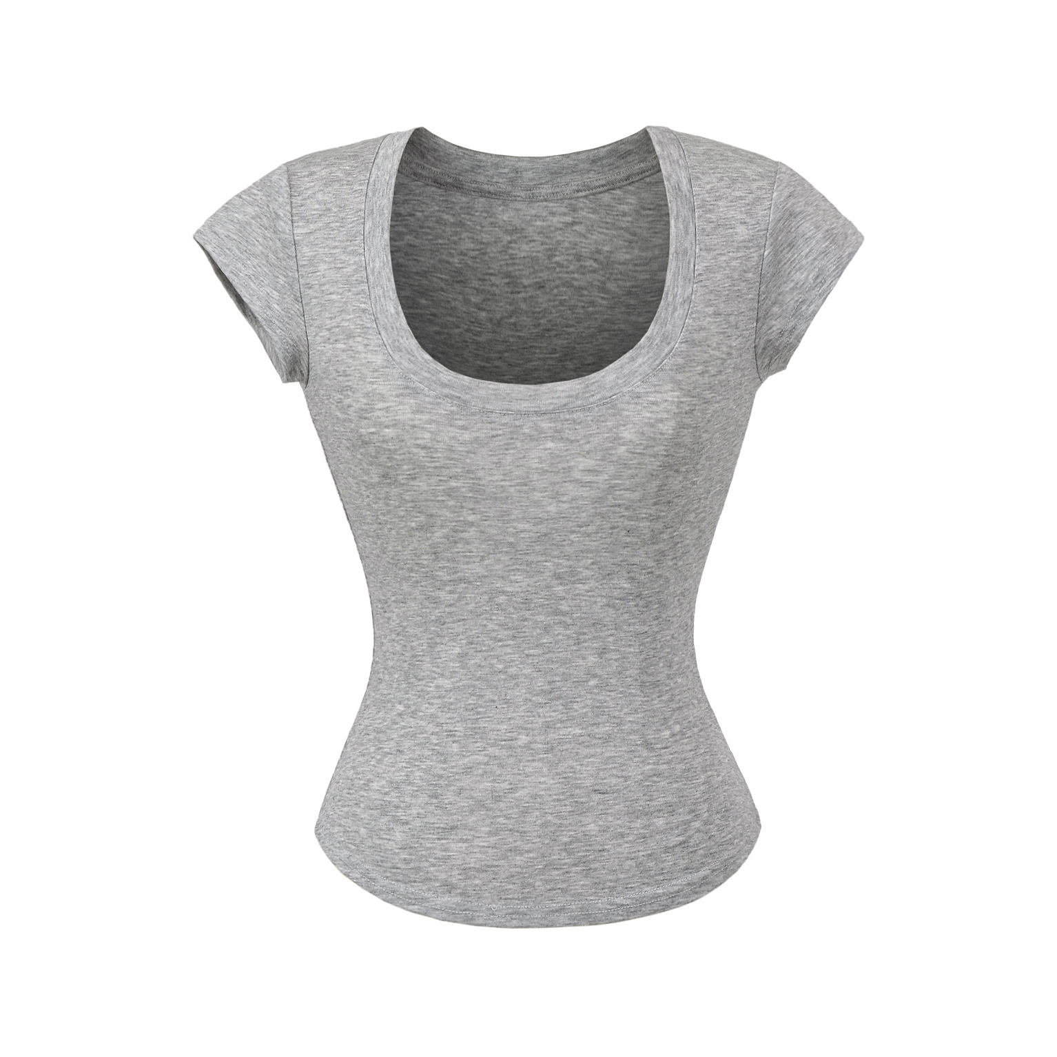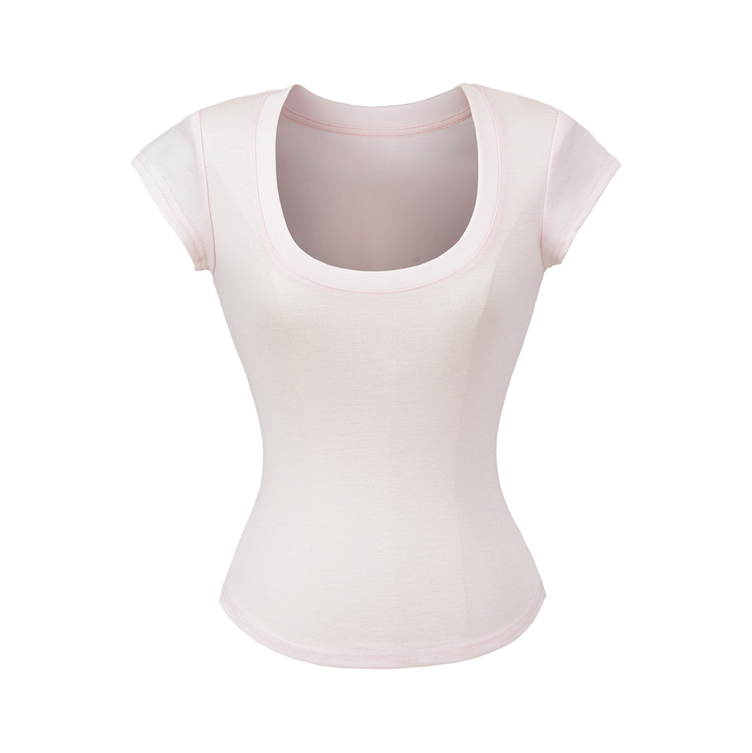 여름 2025 새로운 스타일 스파이스 소녀 슬림 핏 텐셀 U 칼라 반팔 티셔츠 여성용 타이트 허리 슬리밍 솔리드 컬러 탑 타이트베이스 셔츠