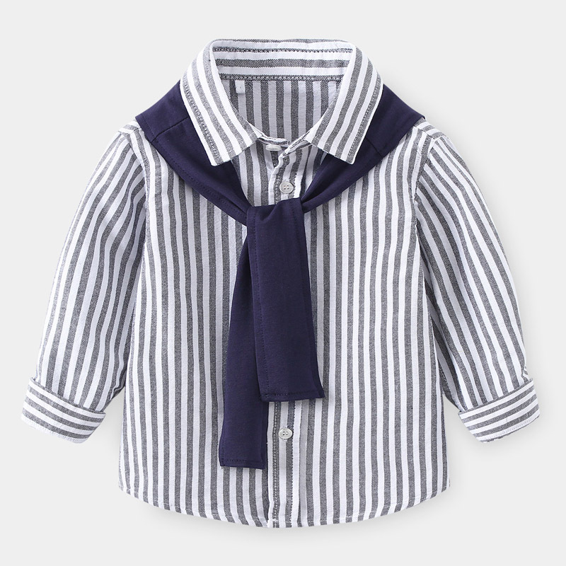 새로운 간단한 봄, 가을 패션 캐주얼 소년 긴팔 셔츠, 숄 스트라이프 탑이 있는 편안하고 세련된 아동복