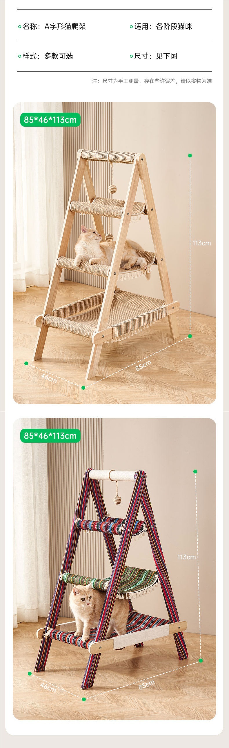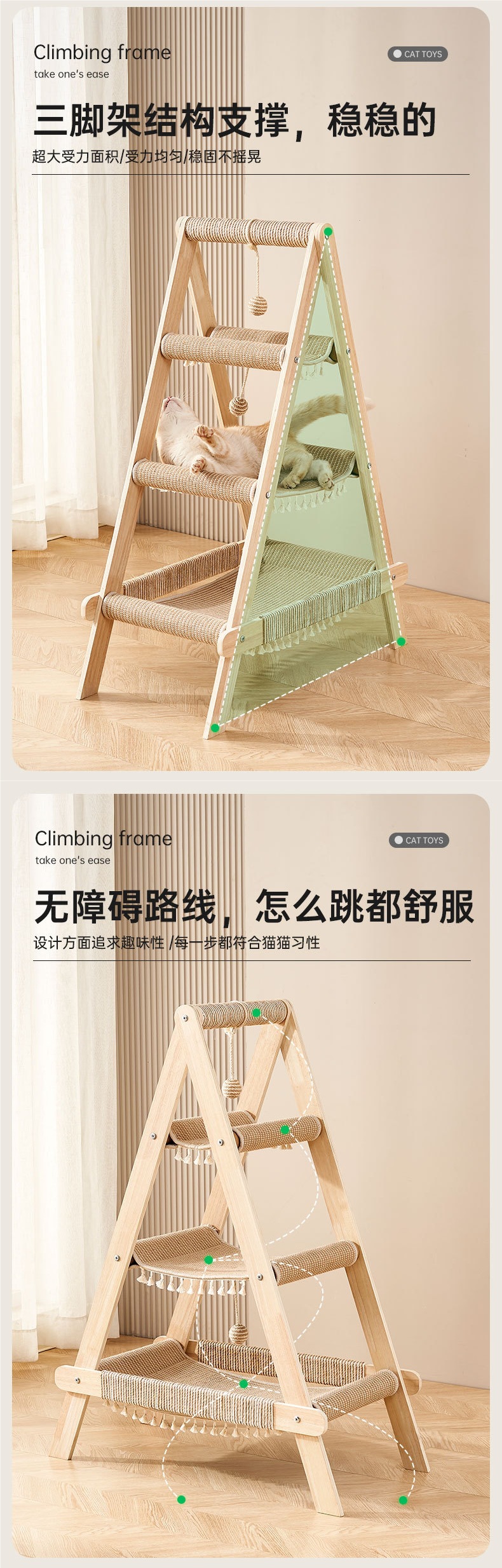 • 컬러풀한 로프 스타일의 A자형 고양이 등반 프레임