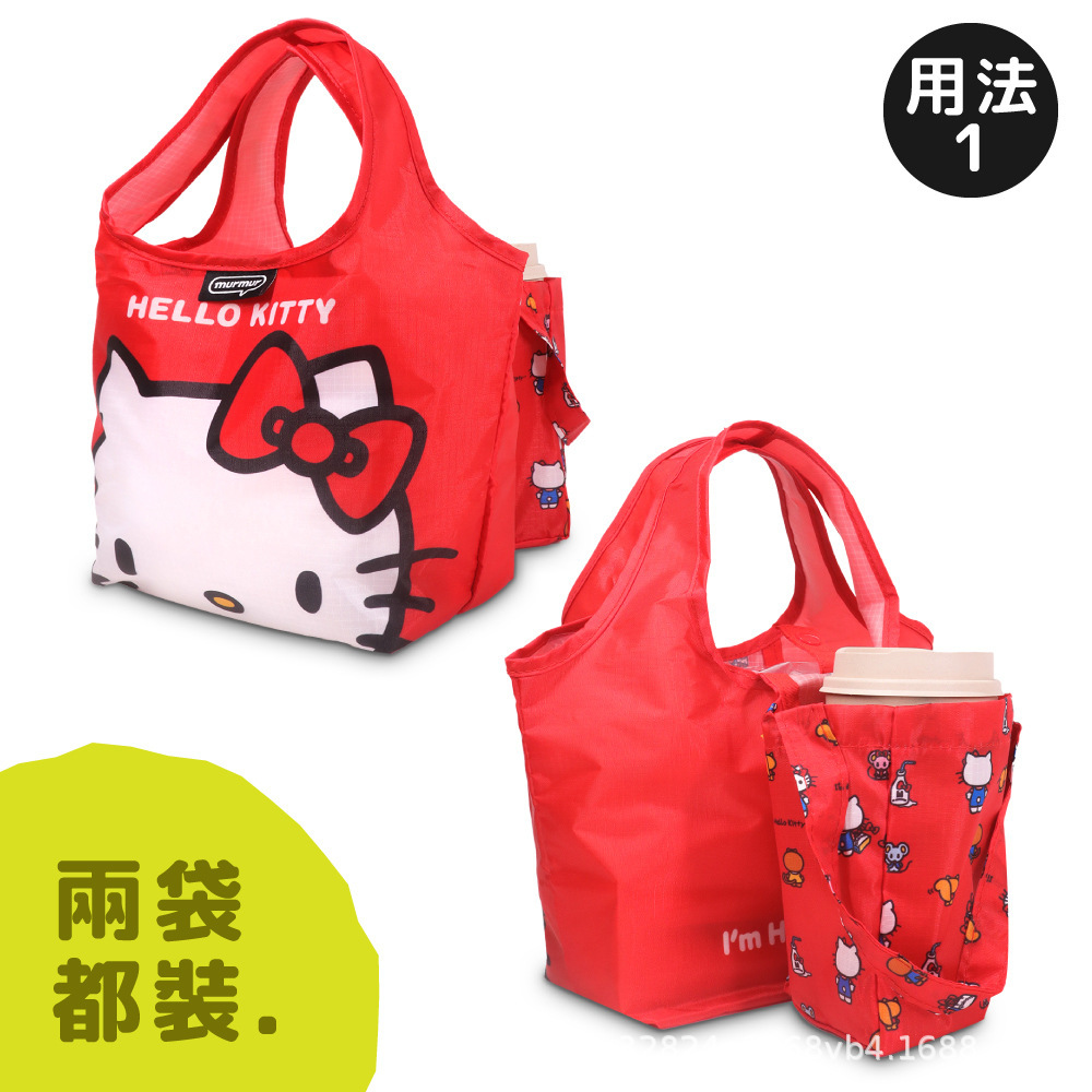 일본 kt 고양이 귀여운 접이식 휴대용 음료 밀크 티 컵 커버 다기능 점심 가방 도시락 가방스토어 가기