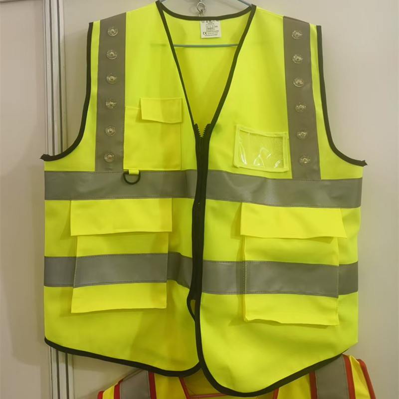 LED 조명 반사 조끼 3단 조절 가능한 멀티 포켓 반사 의류 야외 사이클링 통기성 안전 반사 조끼