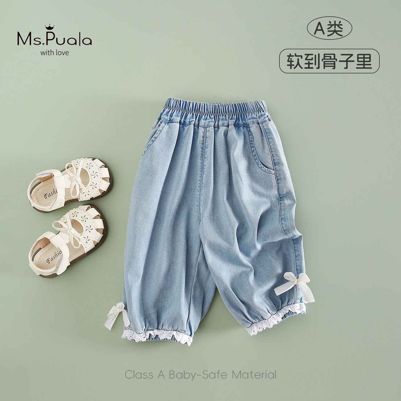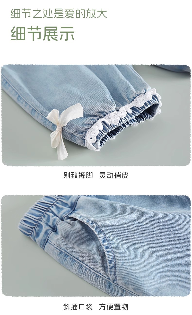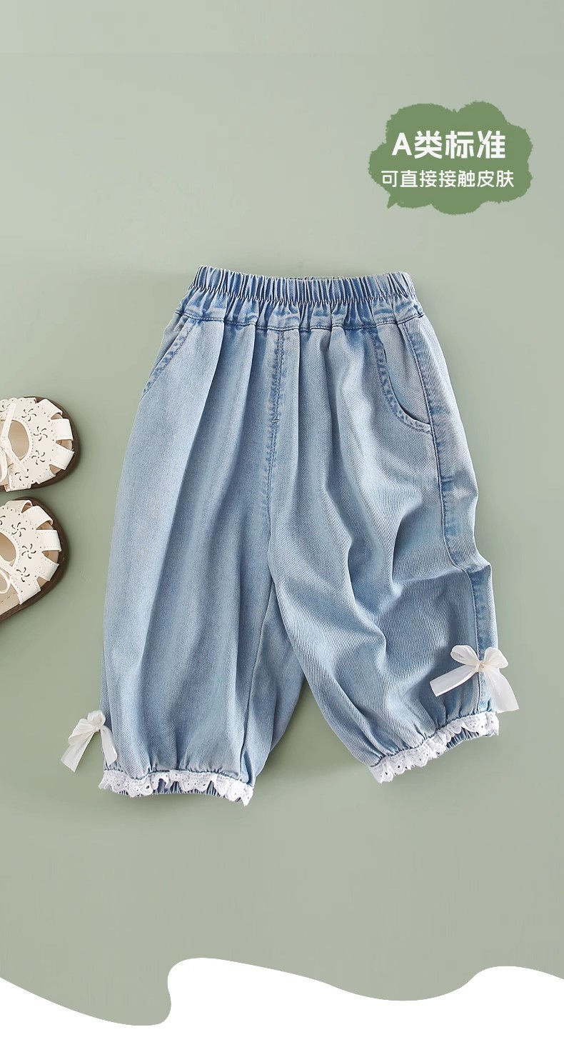 26가지 스타일의 아기 청바지, 여름용 한국 스타일 영유아용 피부 친화적인 부드러운 나비 청바지 9부 팬츠스토어 가기